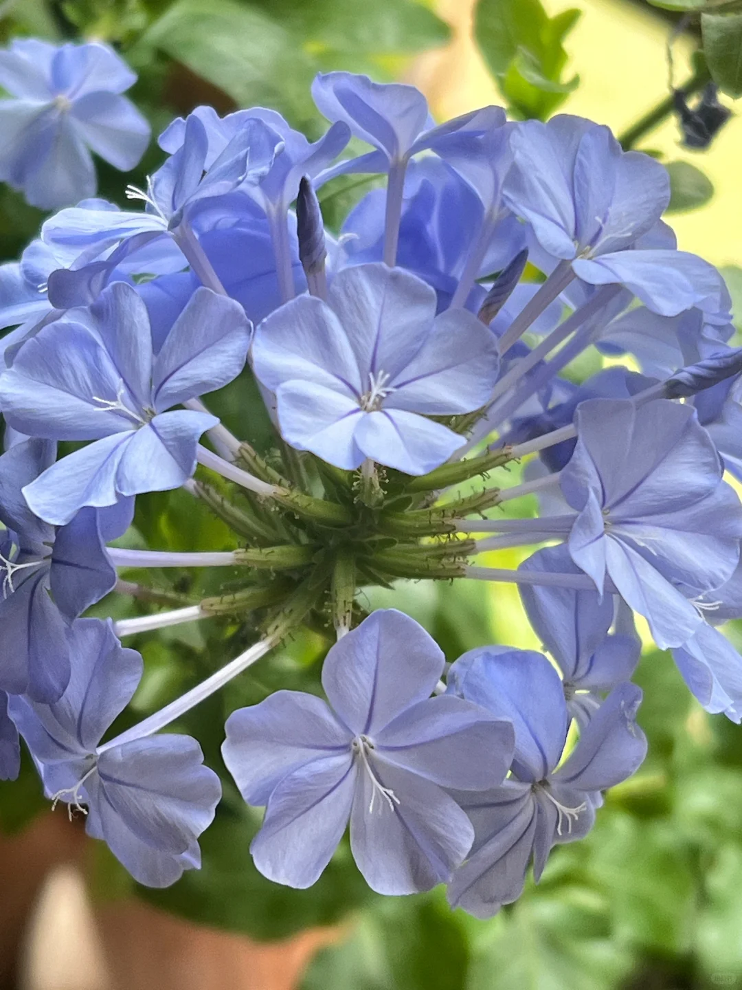 除了一盆蓝雪花,其他的花苗还在装树。这盆蓝雪花真好,今天突然发现第二批花苞已经开始盛放了。