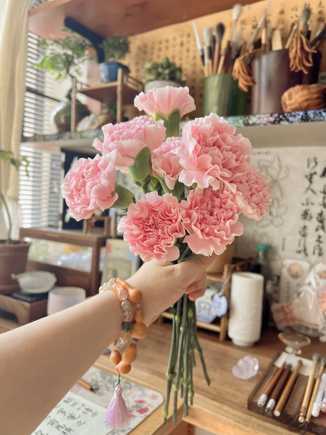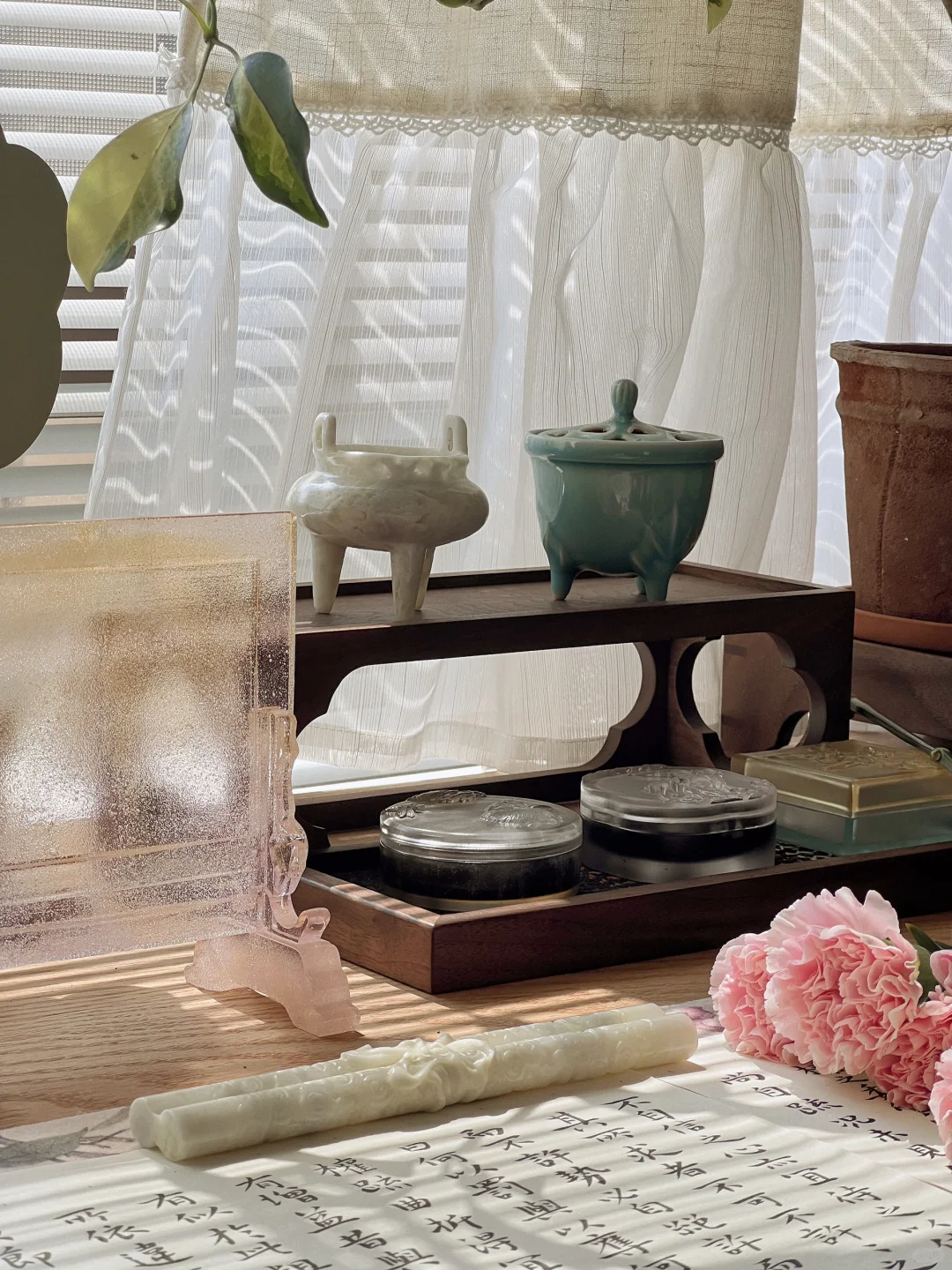 书房日常☀️今天的阳光刚刚好我在书房晒花