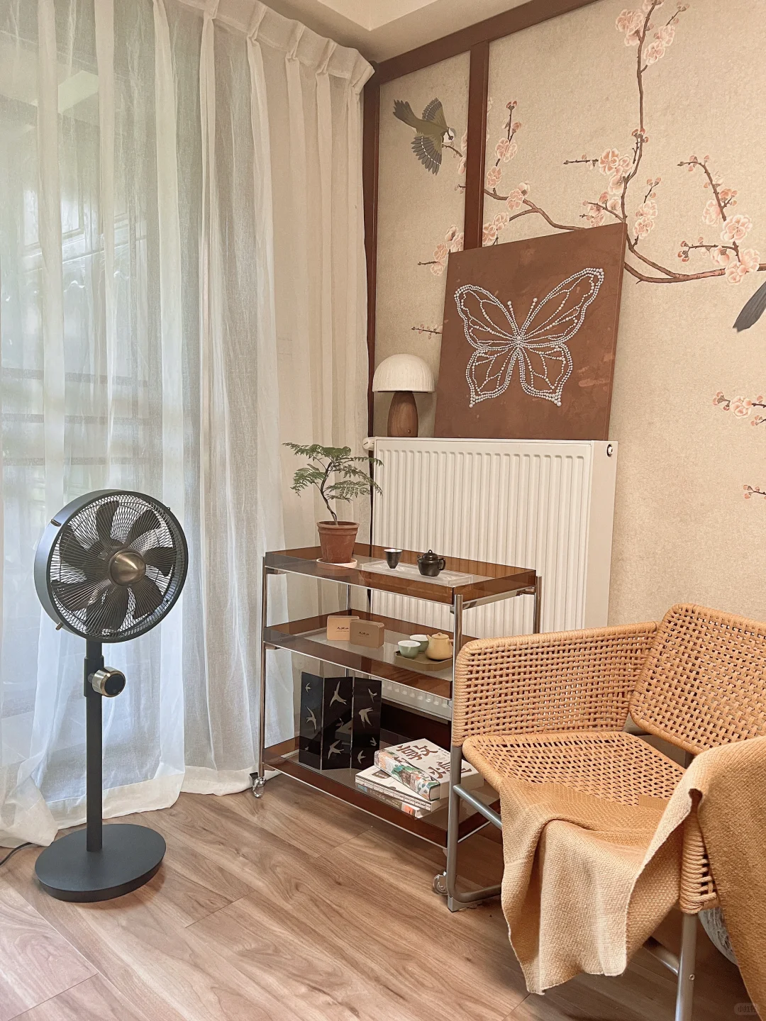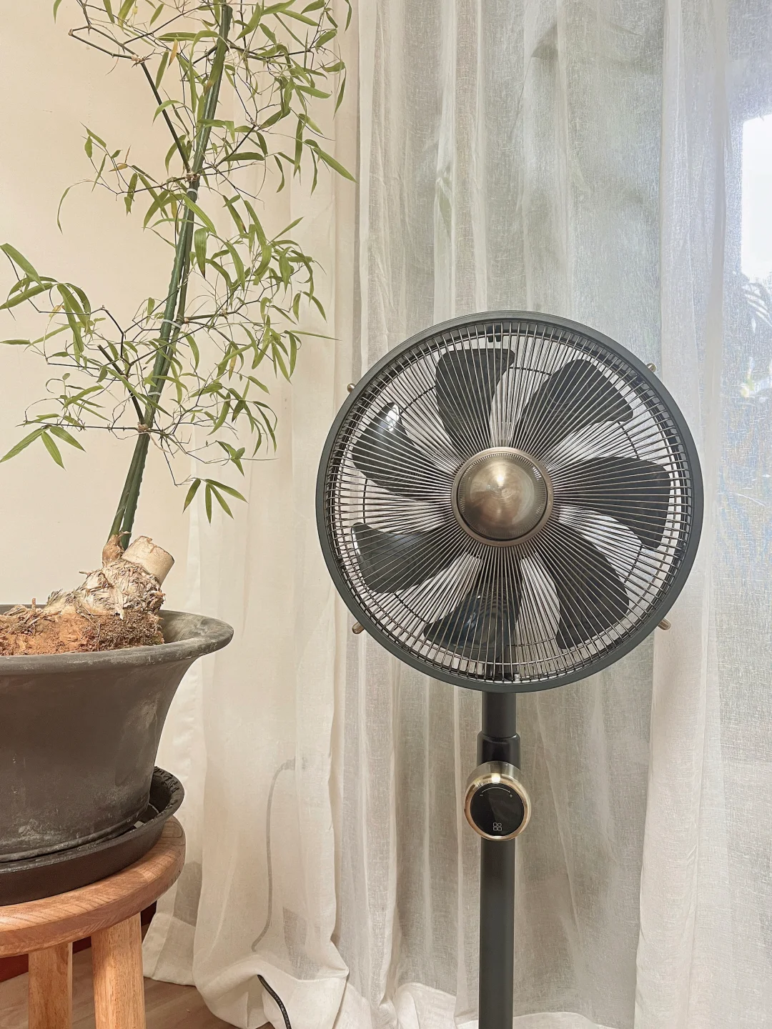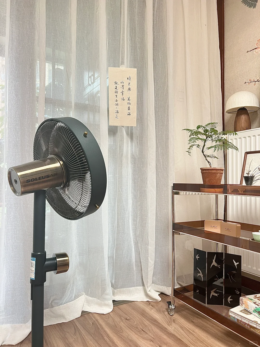 添置了空气循环扇,12档风速满足植物通风、日常吹风换气需要,墨绿主色调搭配复古拉丝金属机身,与室内景致也很搭配。
