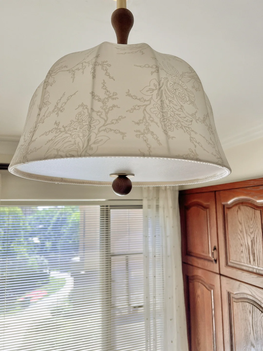 这几天把卧室的顶灯也更换了,花朵型的复古吊灯,布艺灯罩透出的暖黄色柔和光,多了一丝清凉。