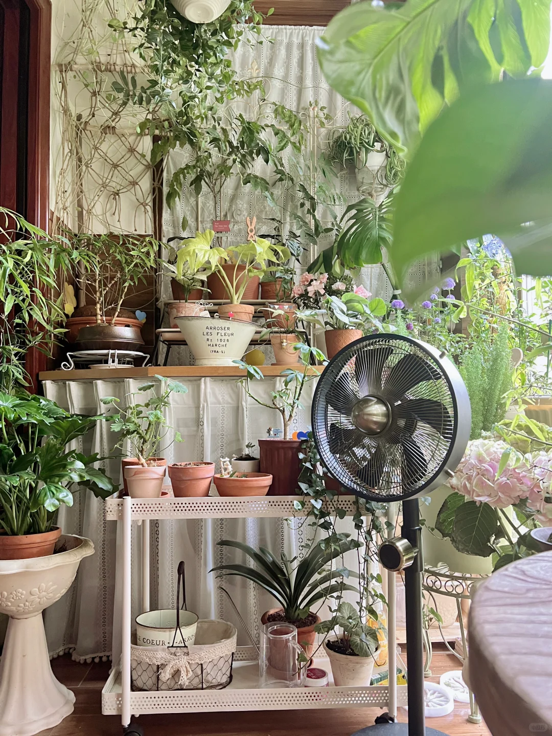 很多绿植不能强光照,搬到了室内,整个房间绿意葱葱。