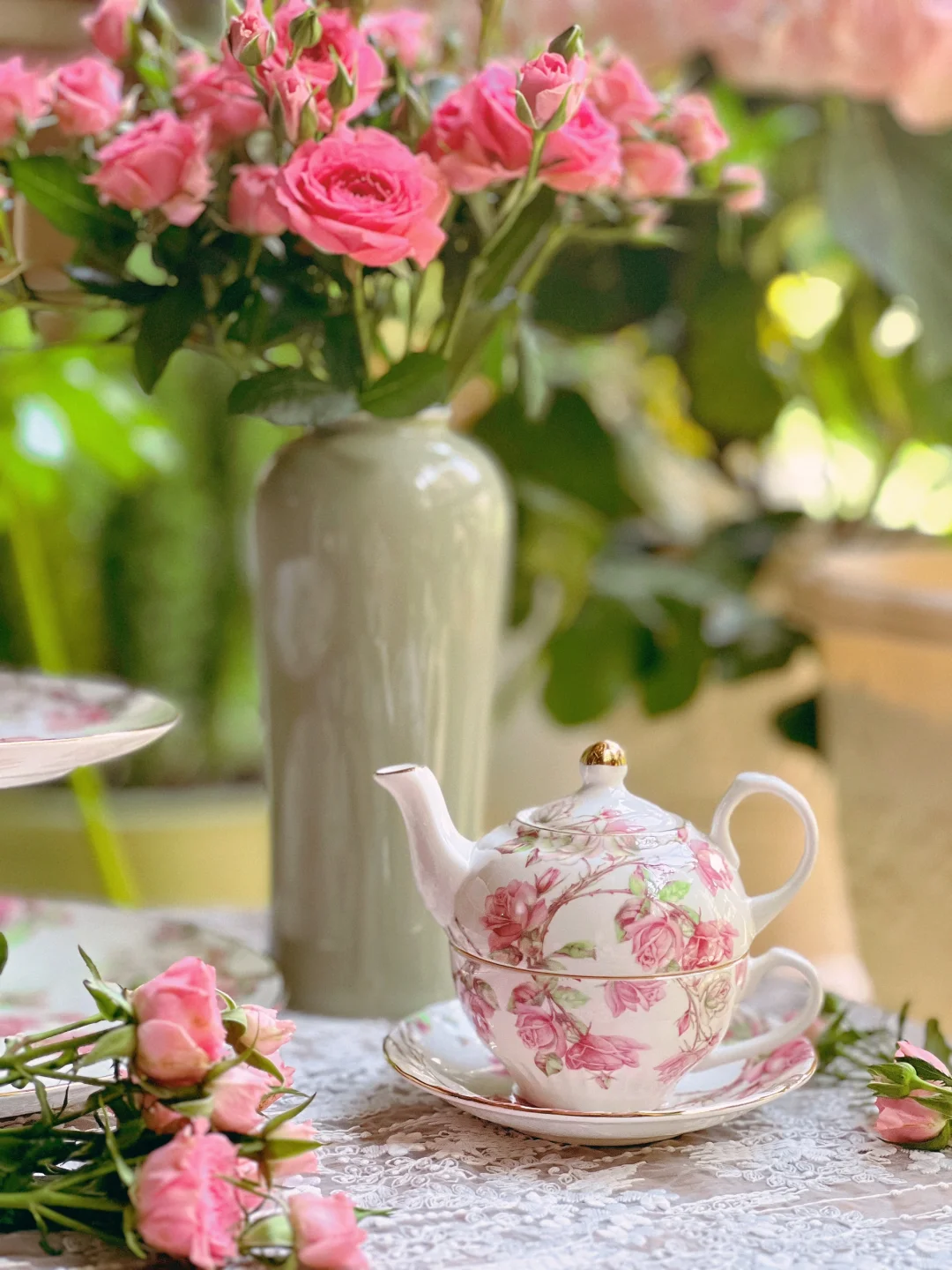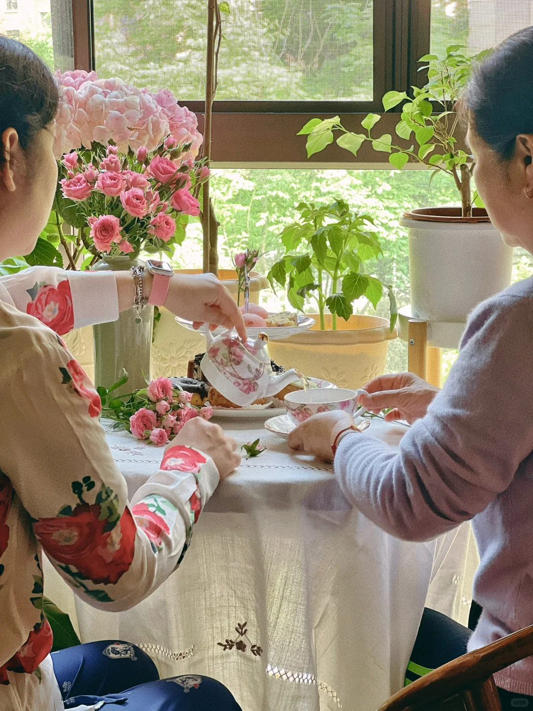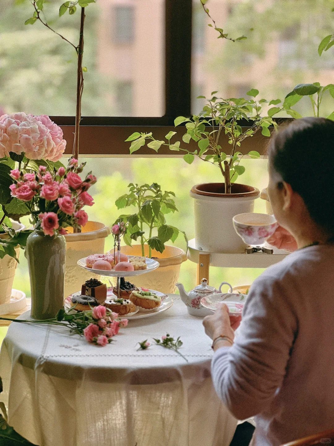 我爱花源于妈妈爱花,我们经常相约去逛花市,享受花草中的娴静温婉。 每一位妈妈也曾是浪漫的小仙女,在生活的烟火气中慢慢淡然。 五月的假日,在我的小阳台花园,精心布置了一餐下午茶,准备了红玫瑰子母壶礼盒和玫瑰花束送妈妈,提前与妈妈来一场母亲节的浪漫约会。 聊聊家常,享受陪伴的快乐。 其实只要懂得,每天都是母亲节。 仁者爱仁,感念母恩。 此间守护,光阴轻缓。
