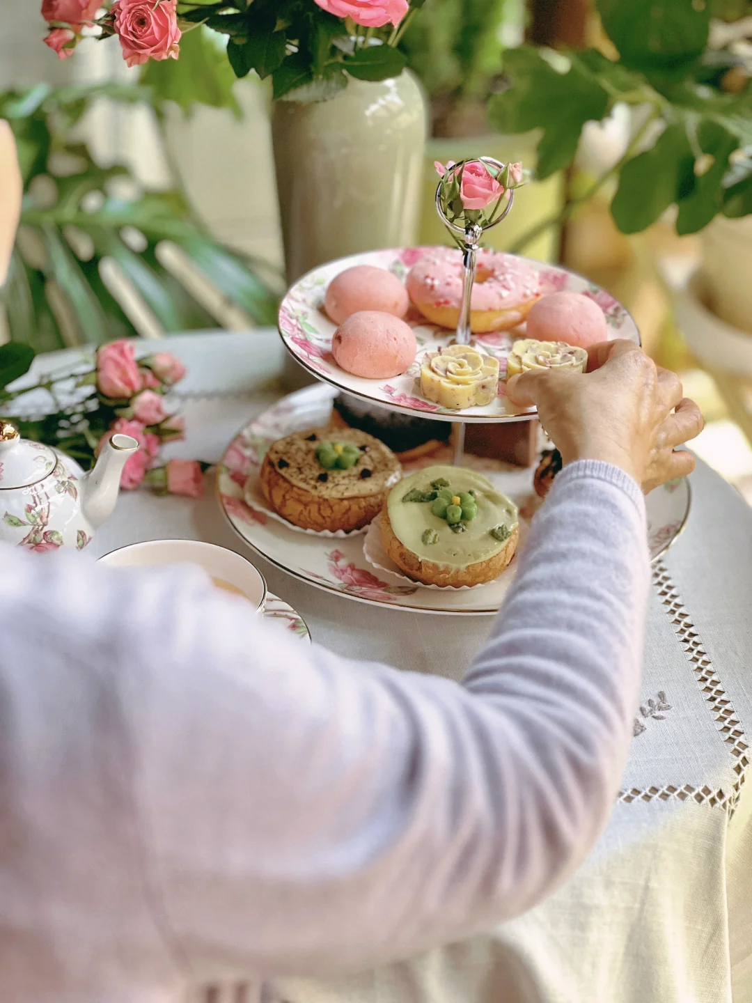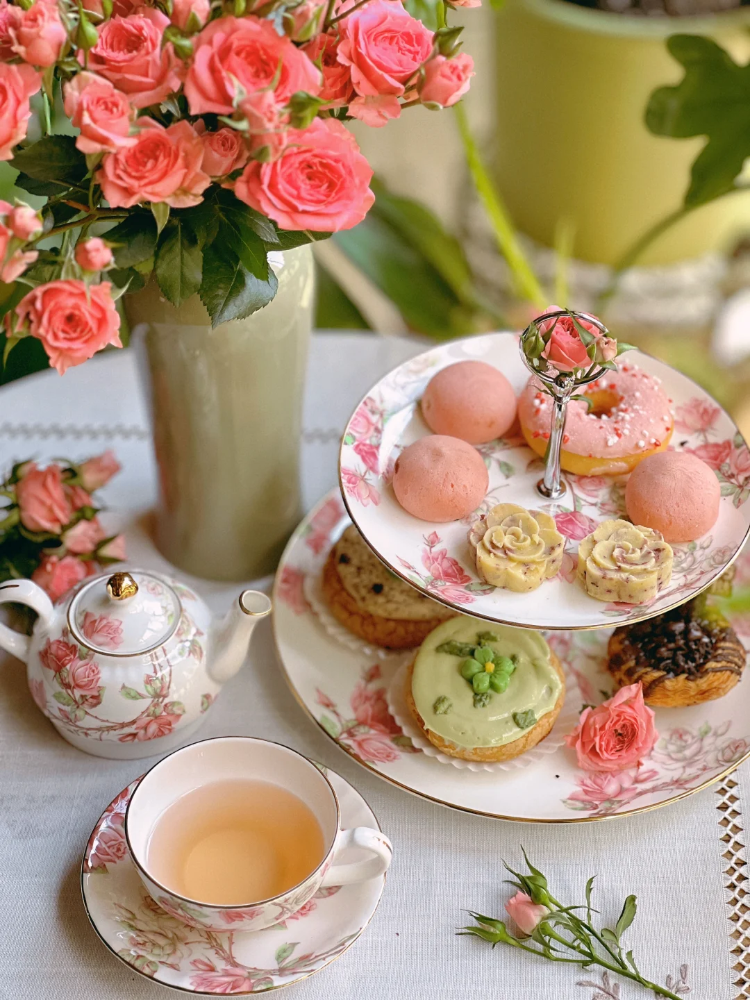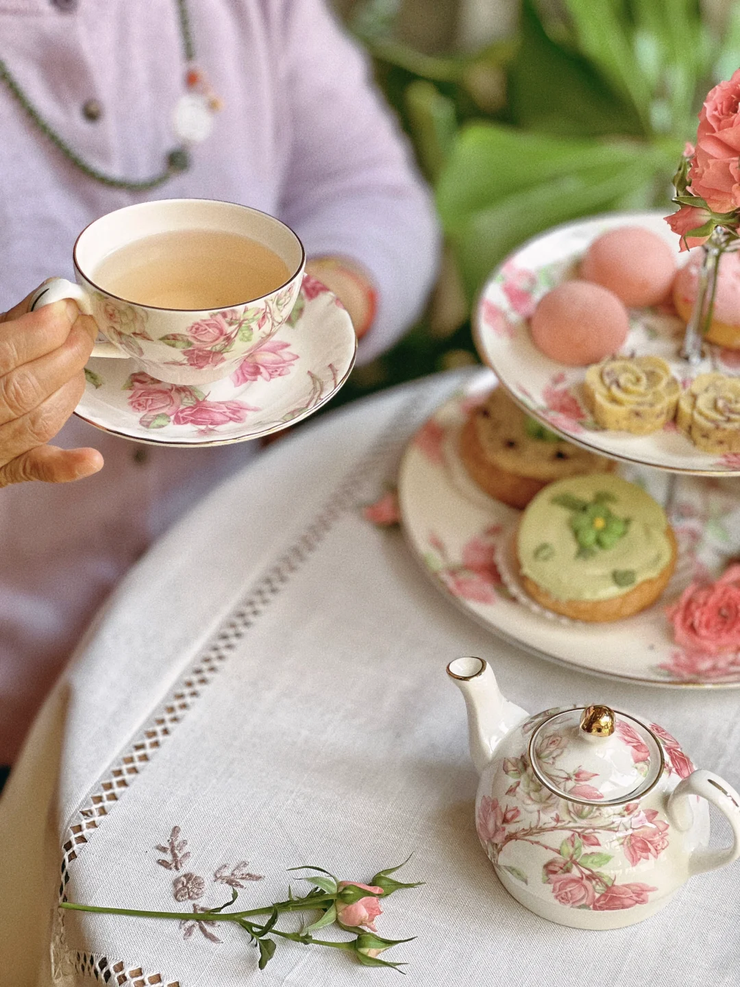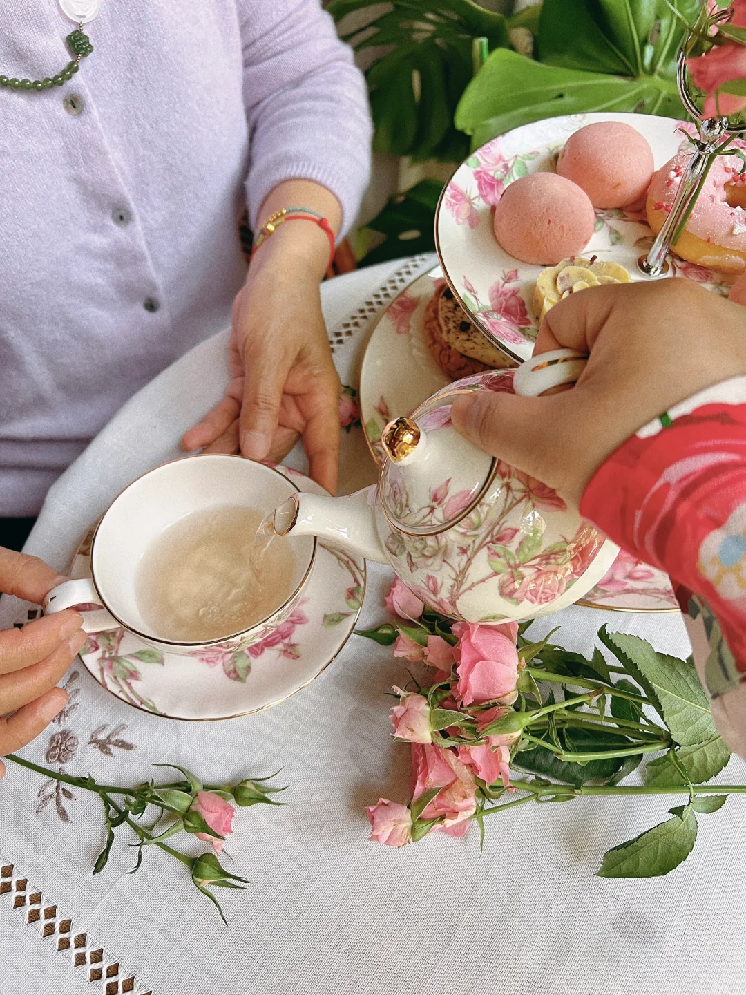 我爱花源于妈妈爱花,我们经常相约去逛花市,享受花草中的娴静温婉。 每一位妈妈也曾是浪漫的小仙女,在生活的烟火气中慢慢淡然。 五月的假日,在我的小阳台花园,精心布置了一餐下午茶,准备了红玫瑰子母壶礼盒和玫瑰花束送妈妈,提前与妈妈来一场母亲节的浪漫约会。 聊聊家常,享受陪伴的快乐。 其实只要懂得,每天都是母亲节。 仁者爱仁,感念母恩。 此间守护,光阴轻缓。