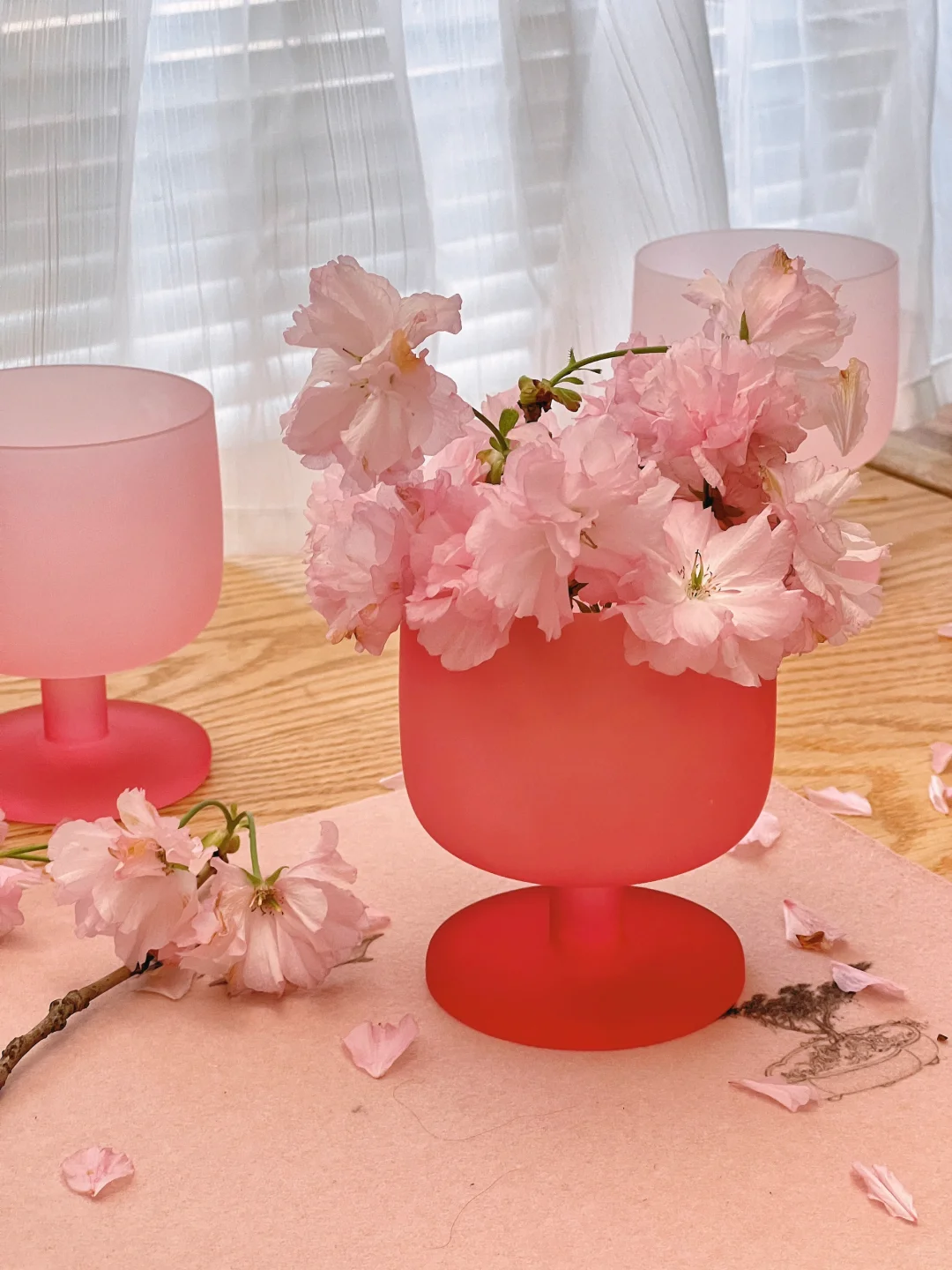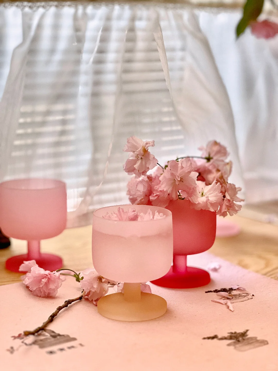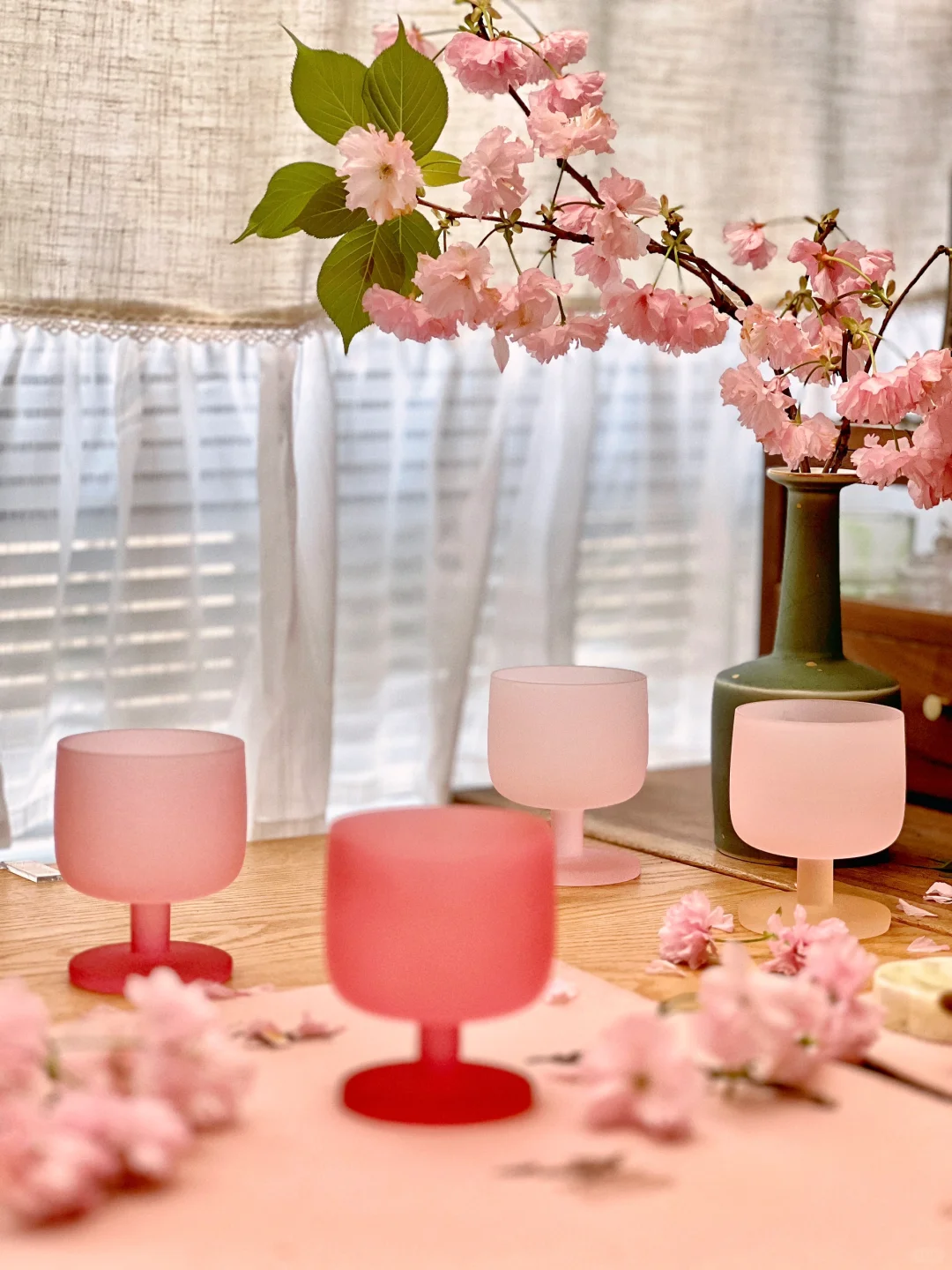 古人诗词中的浪漫,现代人笔墨间的浪漫。 樱花季的温柔晚樱,与古拙小楷的碰撞。 寒绯、关山、染井、垂枝,春季专属的丁达尔樱花渐变水晶玻璃杯,展现了一场早樱到晚樱的花季。