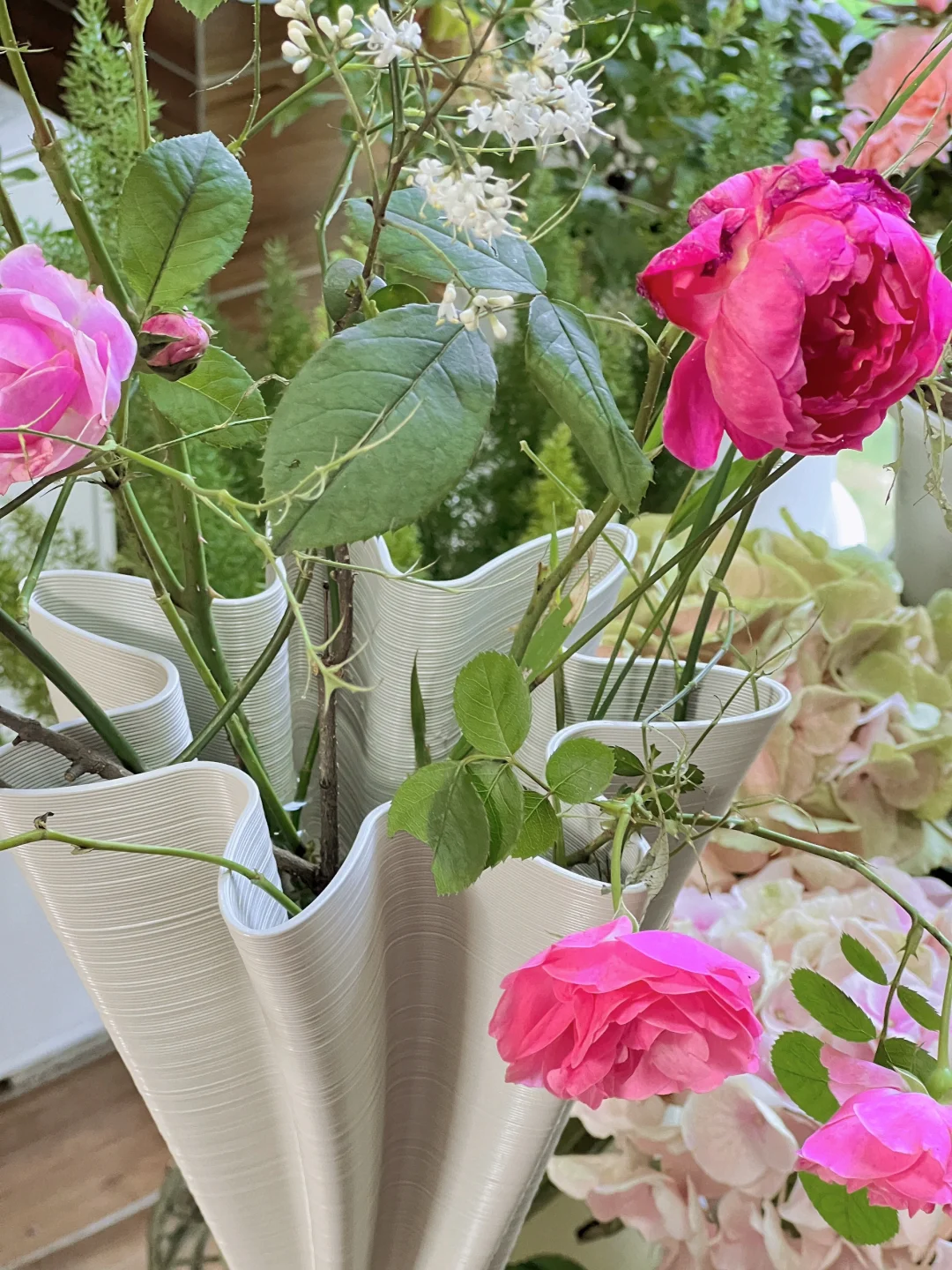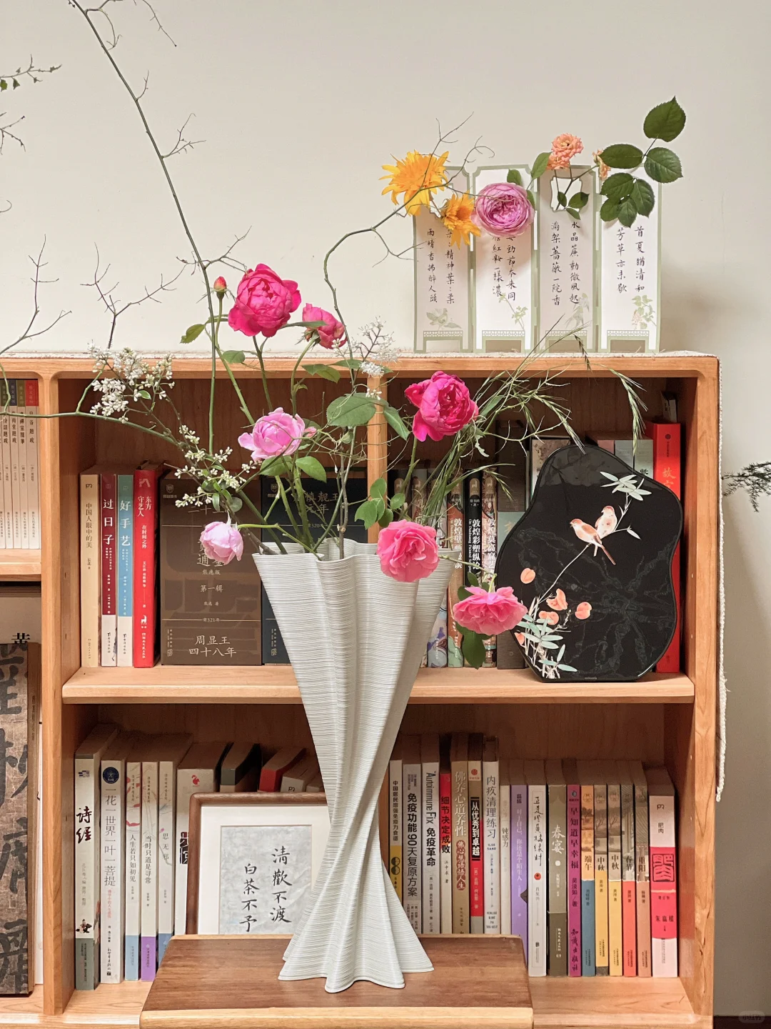 花器用的是TRASHAUS 3d打印花瓶,是以「垃圾」为灵感,回收家电塑料,再生成为高值感的家居摆件。