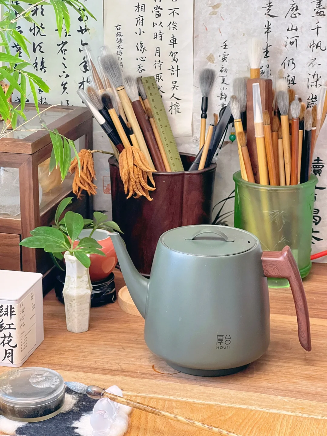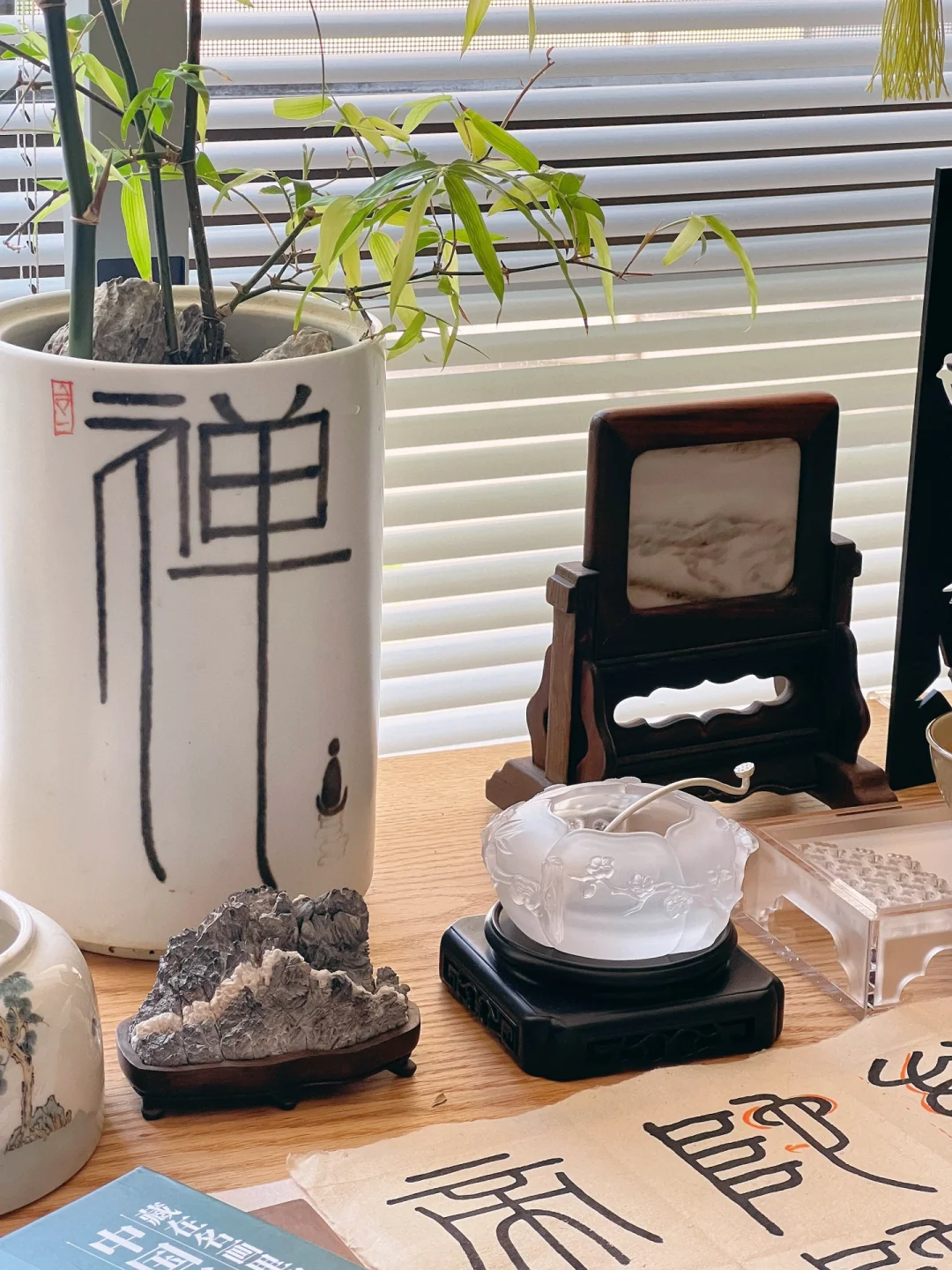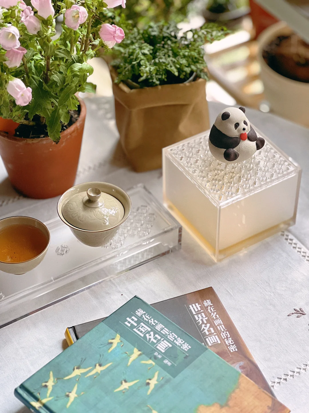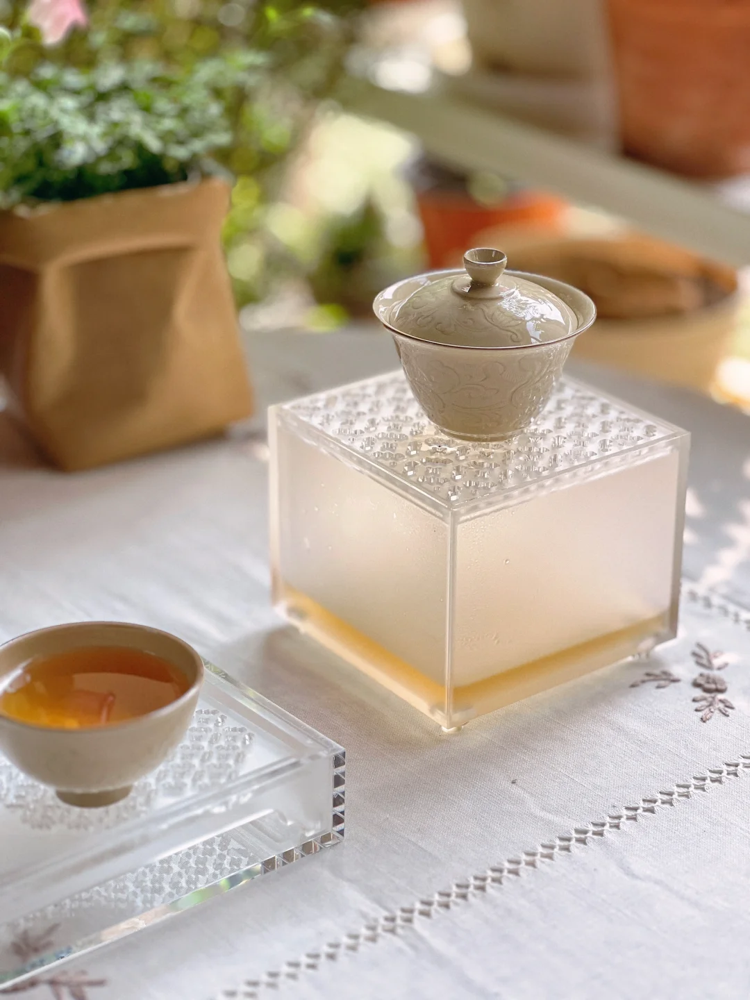 由繁而简的布置茶席,精简到一套壶承和一碗一杯。
