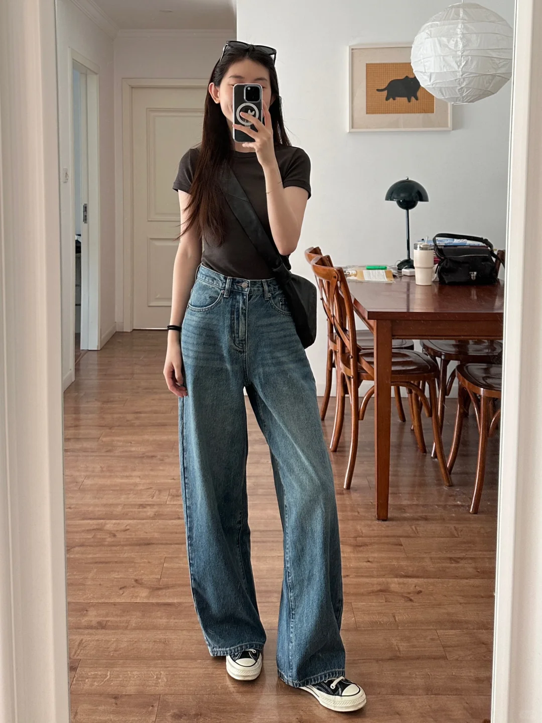 光之影&AI都市街头风,白衬衫+牛仔裤,清新自然,轻松出行!白色衬衫穿搭简
