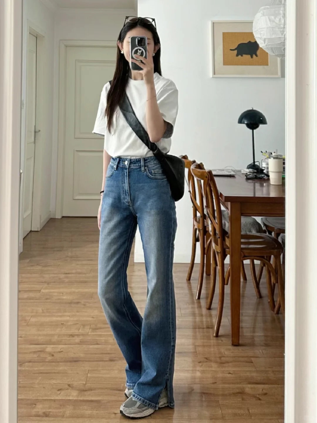 光之影&AI都市街头风,白衬衫+牛仔裤,清新自然,轻松出行!白色衬衫穿搭简