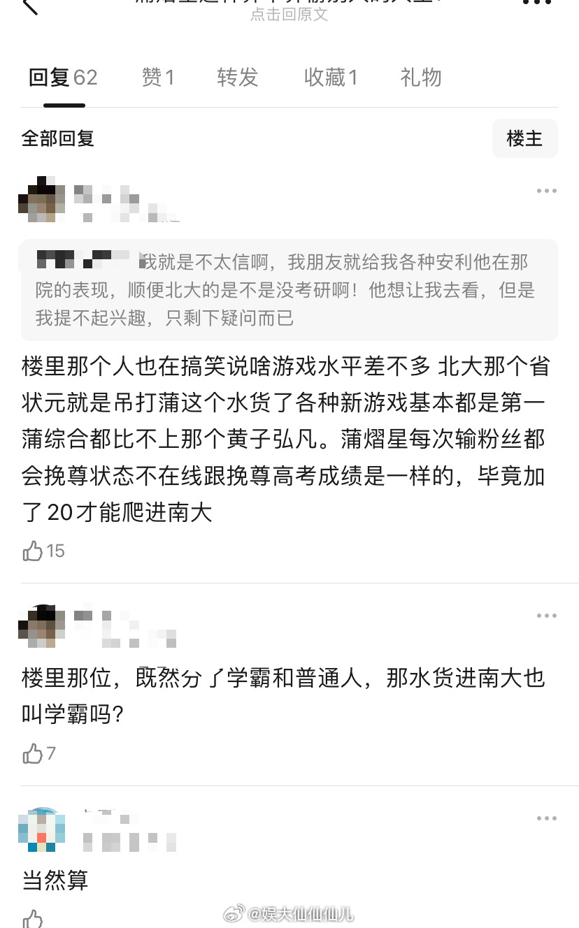 随着李雪琴学历被质疑,网友又开始审判说蒲熠星偷别人的人生了……好像是有一个普通高考生因为蒲加了二十分进南大,所以名额被挤掉了,但是如果是正规渠道加分也无可厚非吧,他跟文韬比谁更强啊?# 李雪琴 游泳证 #|# 李雪琴同届考生发文 #