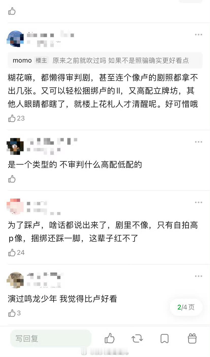 曾宥臻和卢昱晓好像一个模子里刻出来的……比也仪还像的程度,我看度华年的时候都恍惚了,想着鲈鱼的咖位应该不至于来给麦麦演丫鬟吧,搜了下原来是曾,俩人还都和虞书欣合作过,曾的是国王在冬眠,你们看看五六的合照她俩像不像 网友说曾宥臻是贵替版卢昱晓 脸更精致[融化] # 卢昱晓这闺女针不戳 #