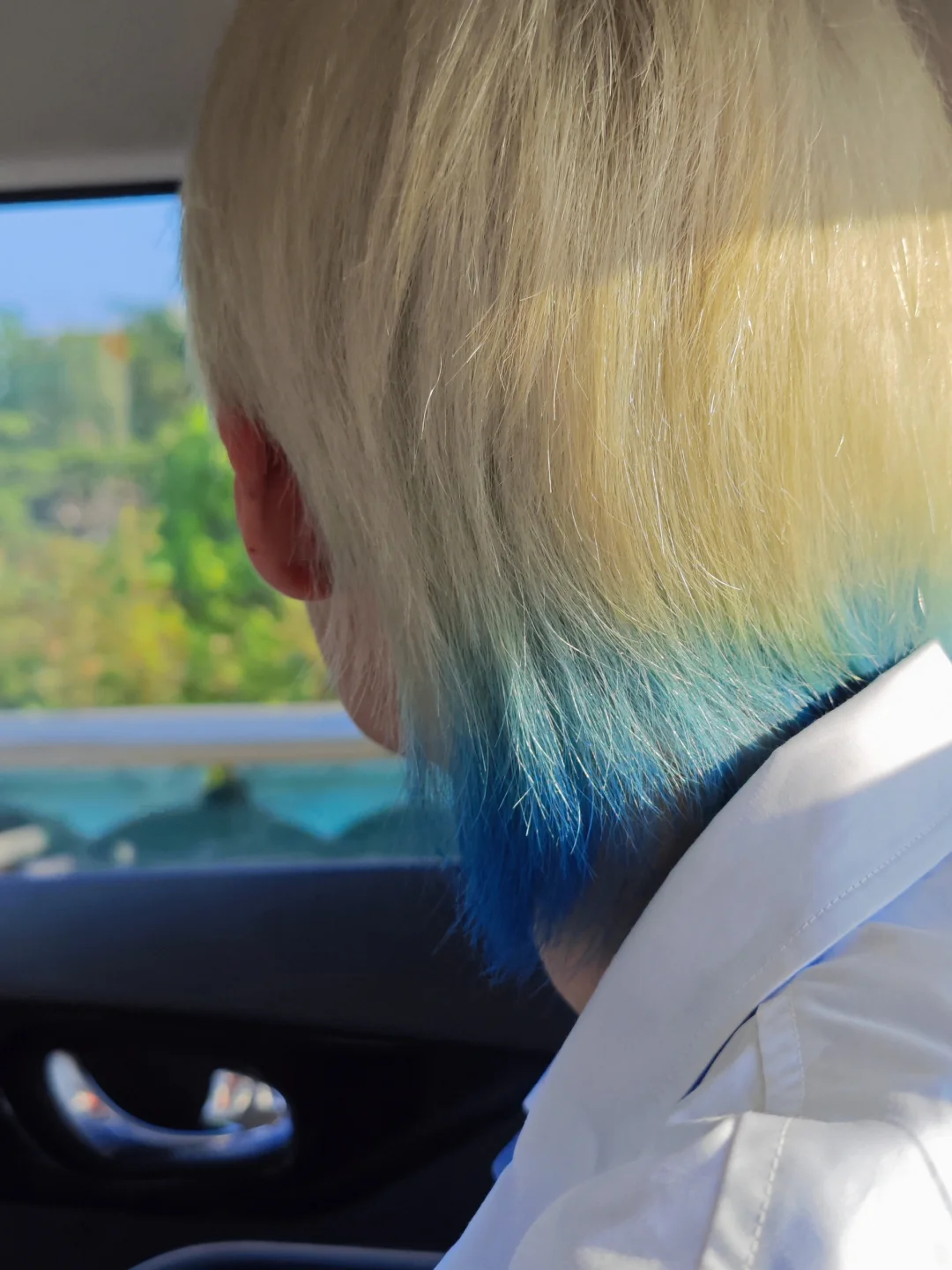 🔷哈哈哈,前兩天DIELLO BFAF 想染頭髮,染白金色然後把這些天留的狼尾單獨染一點藍色,輕微的漸變上去