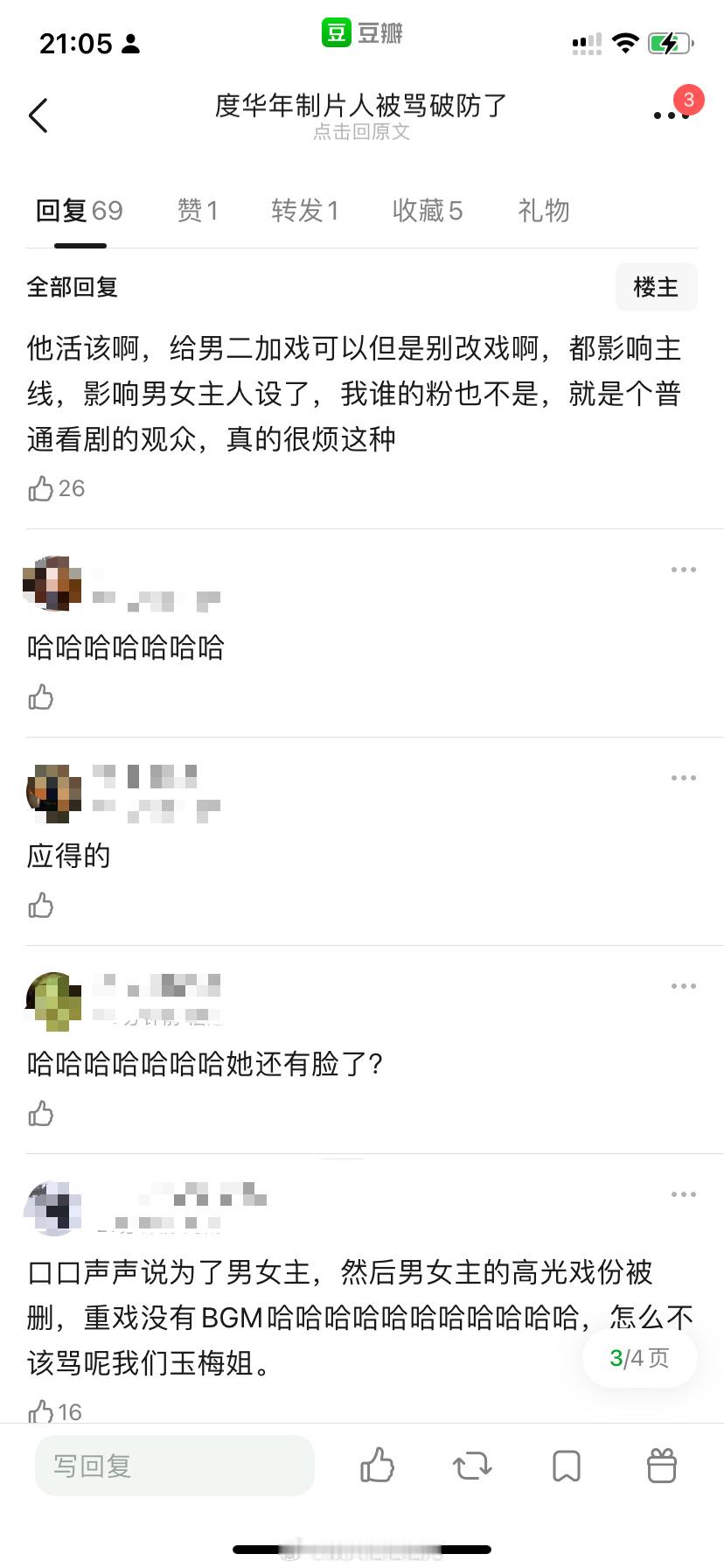 度华年制片人给男二陈鹤一加戏强捧影响到男女主感情线被张凌赫赵今麦cpf给日到破防开一键防护了[允悲]之前还多次拉黑牛麦粉引起强烈不满 大家看度华年应该都是冲着牛麦去的吧 为什么要跟观众对着干呢
