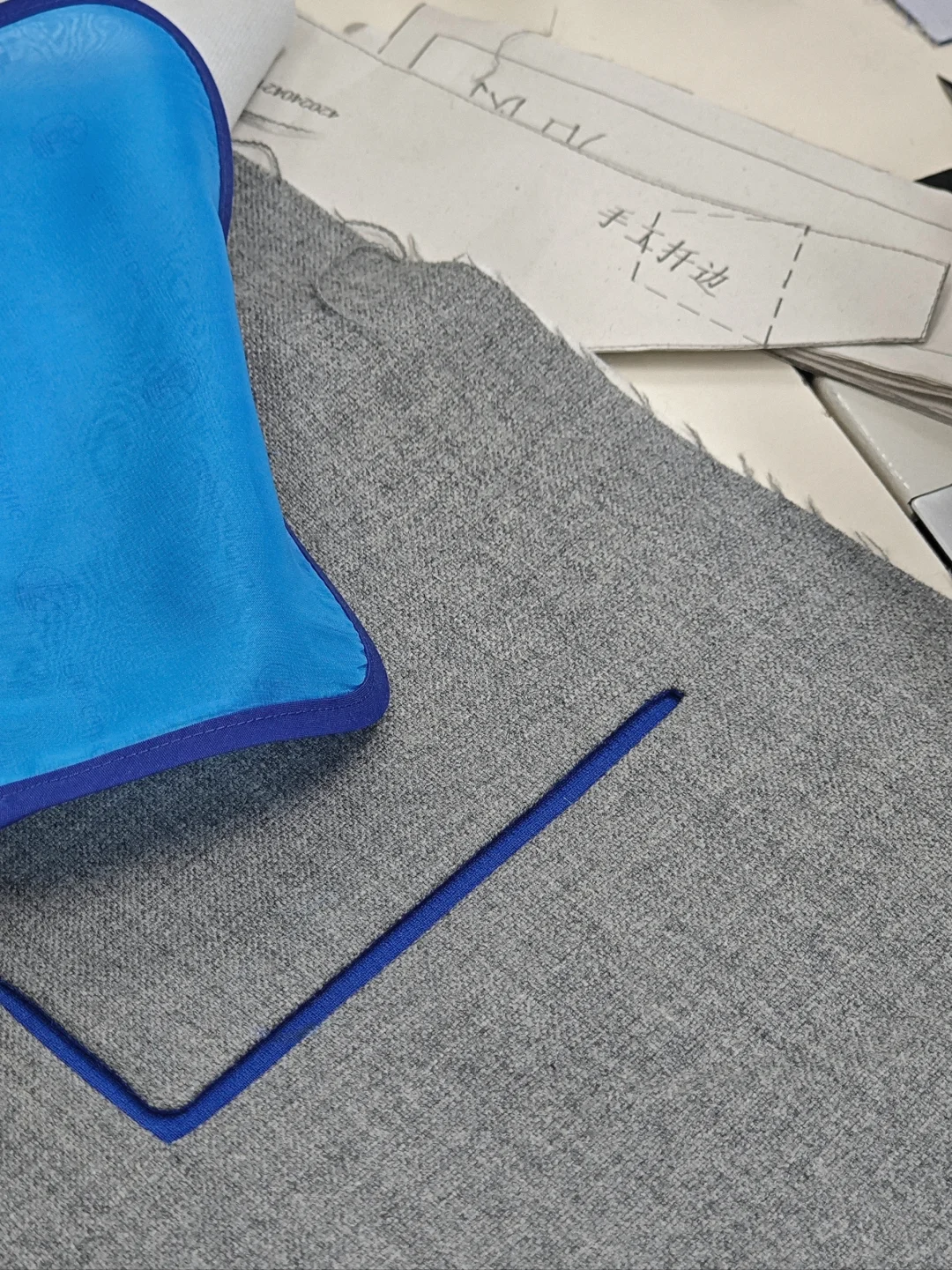 🔷繼續做這個看起來很簡單的口袋 💙這款衣服的重點是領子「消失的領子」,之前做的胚樣放在了最後一張圖