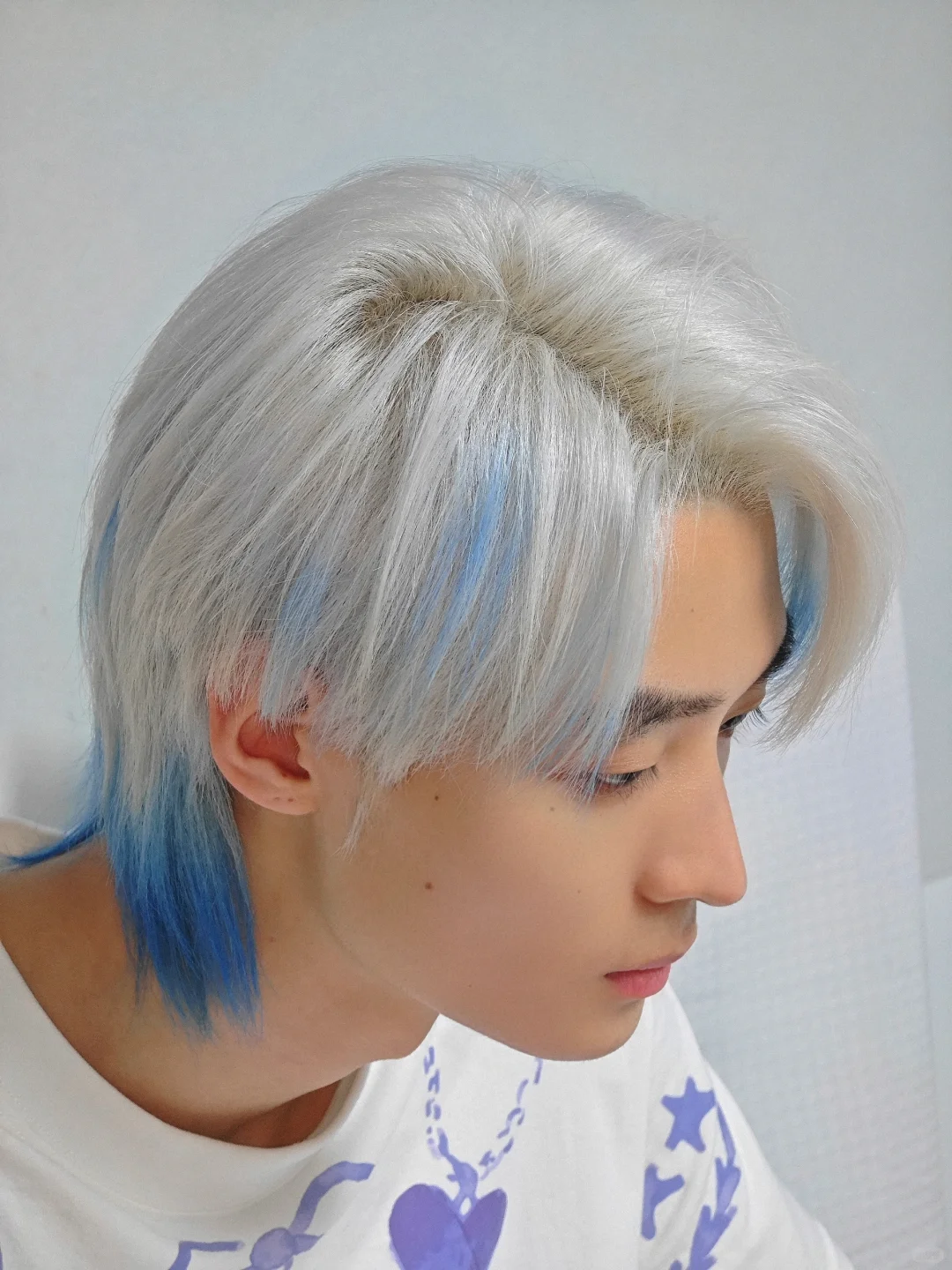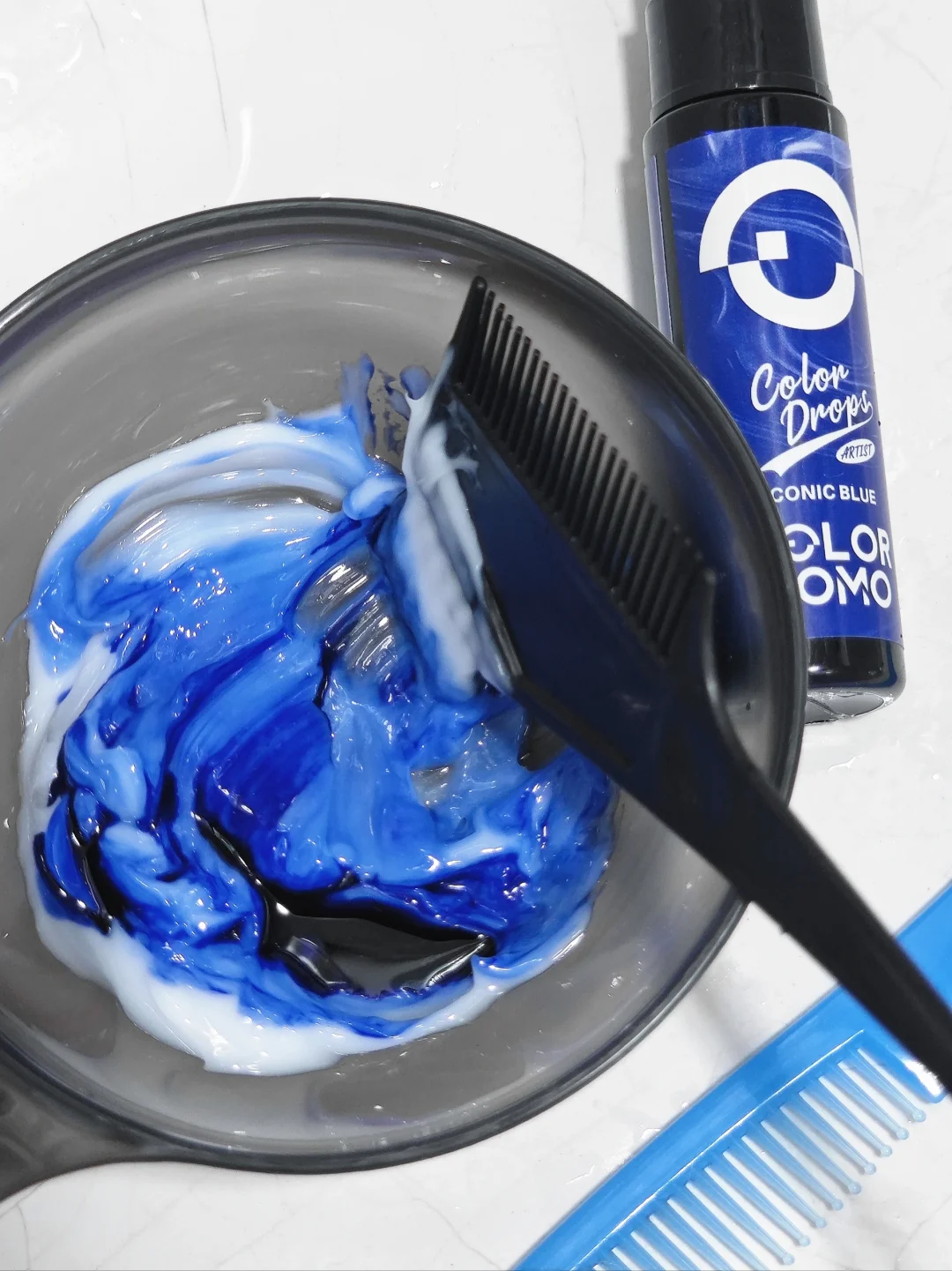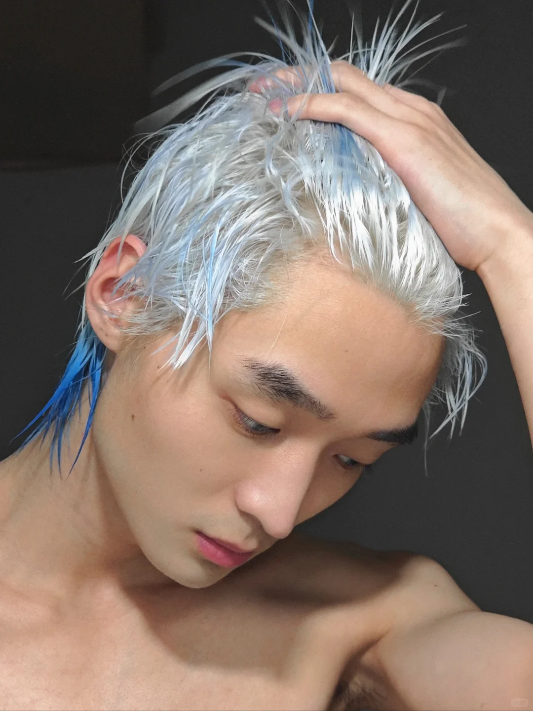 这蓝色真的好看,但是我心疼我的头发……每次染都像在受刑