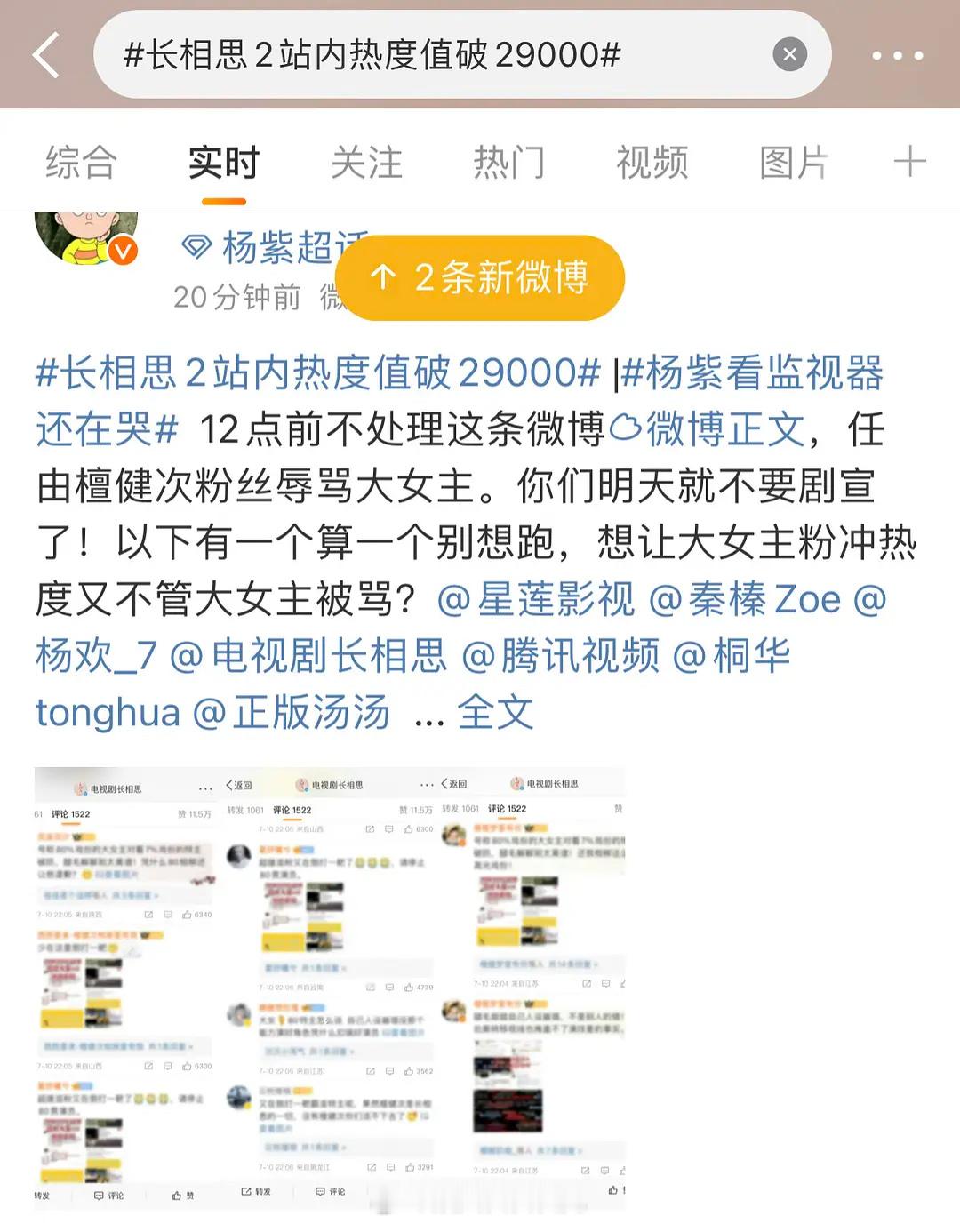 杨紫大粉引导散粉网爆相柳,檀健次粉丝在长相思官博pl里维权,然后官博现在为爱精选了🤪明天有线下合体直播,听说还要当面喊话