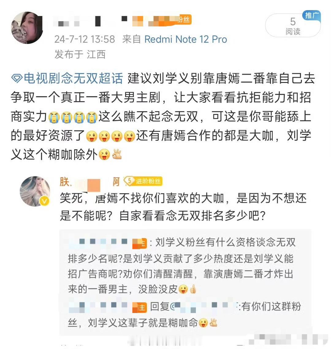 刘学义唐嫣粉丝还在交流,起因是刘学义粉丝私自把自家粉丝群关联了剧超,然后🍬粉不满意没和她们商量,你们觉得🍬粉小题大做还是刘学义粉丝不尊重人……