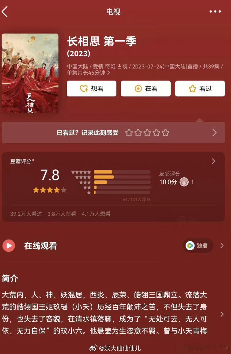 #长相思2开分6.6#比第一季低了好多,很多剧粉都去打一星了,这得多难看啊[晕]