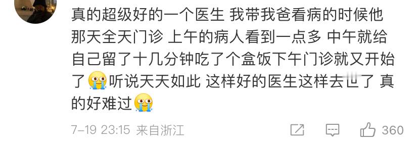 天啊这位医生就这么不幸的去世了,听说他在院内风评很好,经常牺牲自己吃饭休息的时间为患者看诊,希望能把凶手绳之以法严惩不贷,但不要涉及家人,他们也是无辜的,李医生应该也不希望这样[泪][泪][泪]#李晟医生#|#温州一医生工作时被砍伤正抢救#