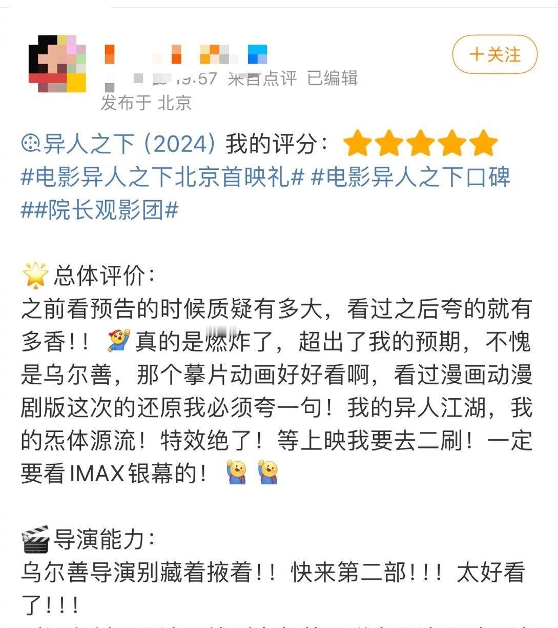 #乌尔善新片口碑#救命🆘天知道我有多期待乌尔善导演新片《异人之下》,口碑也太好了吧,朋友送了一张27号西安路演第一排的票,已经准备好到时候去看了😋乌尔善导演从不毁ip❤️🥰