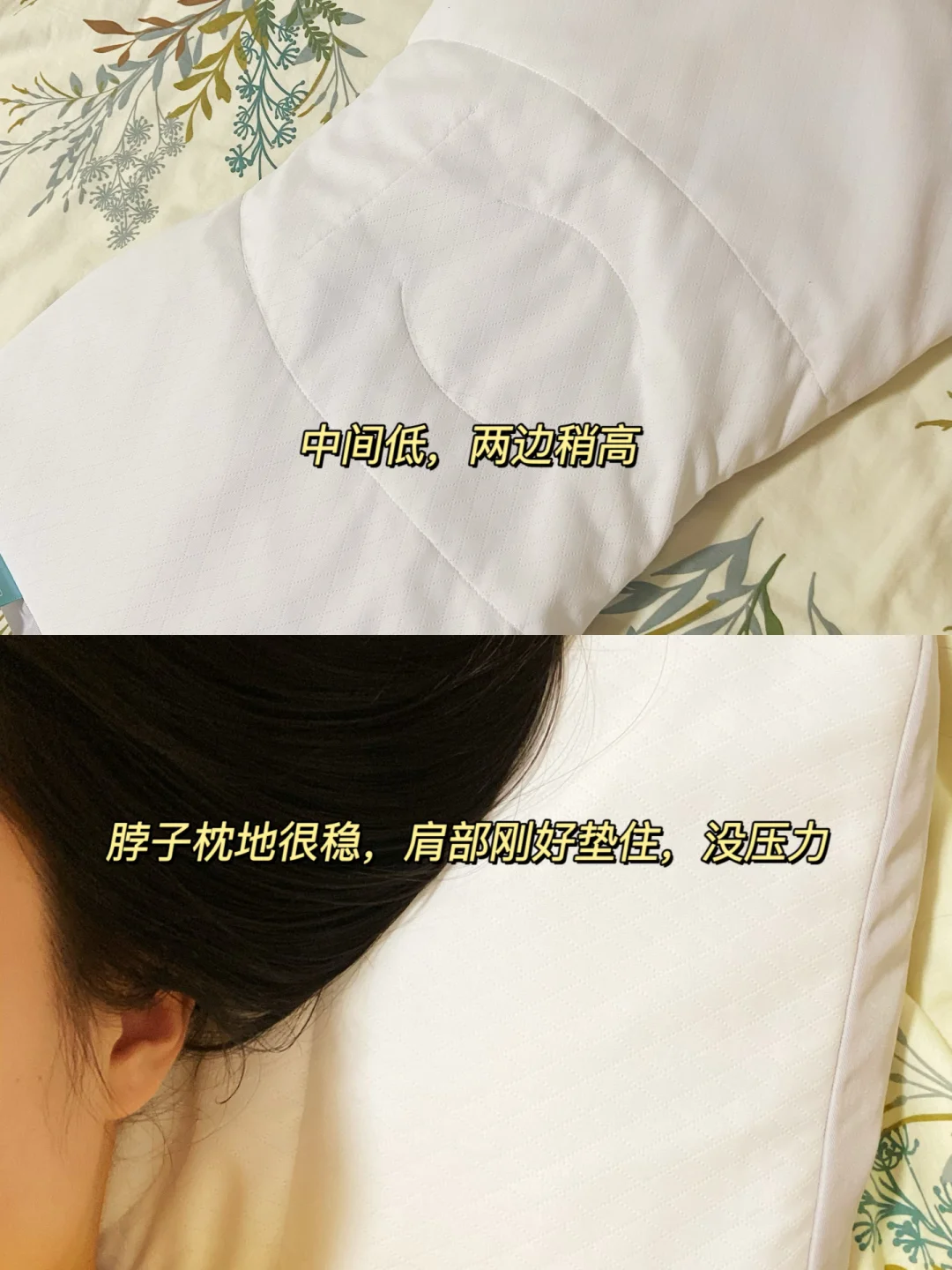 🥹我将信将疑枕了3晚。不得不说,护脖真的可以,流线型中间低两边稍高一点点,脖子和肩颈的位置垫的刚刚好。