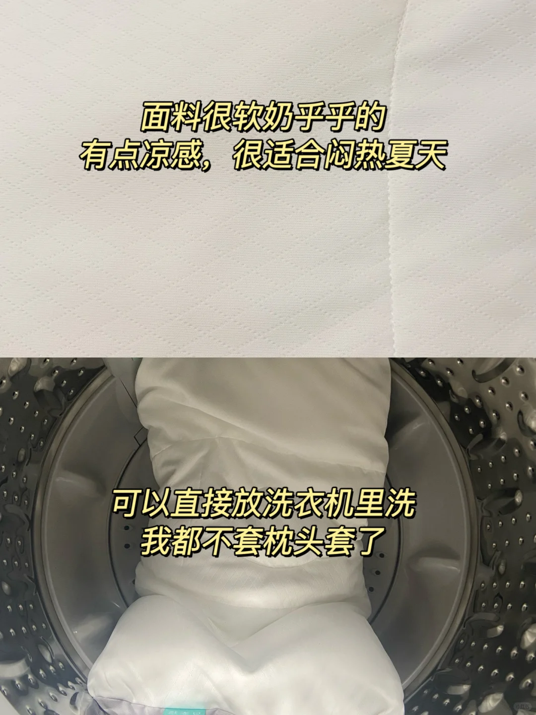 ⚠️zui关键的是,很适合潮湿闷热的夏天用,不怕出汗,闷热,发霉。可以直接放洗衣机里洗,表面的材质柔软有一点凉凉的,干脆枕头套都不用了😅