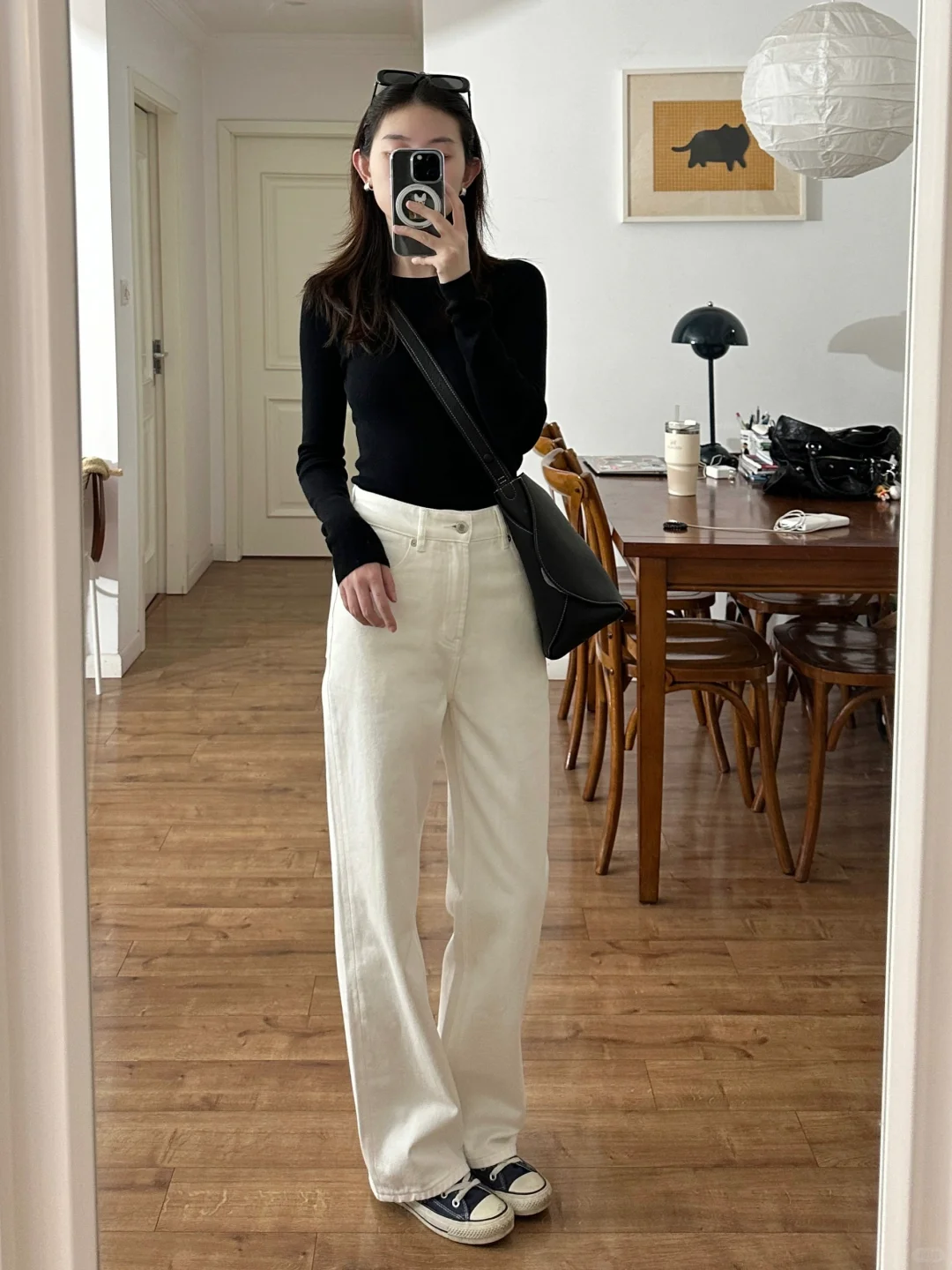 光之影&AI都市街头风,白衬衫+牛仔裤,清新自然,轻松出行!白色衬衫穿搭简