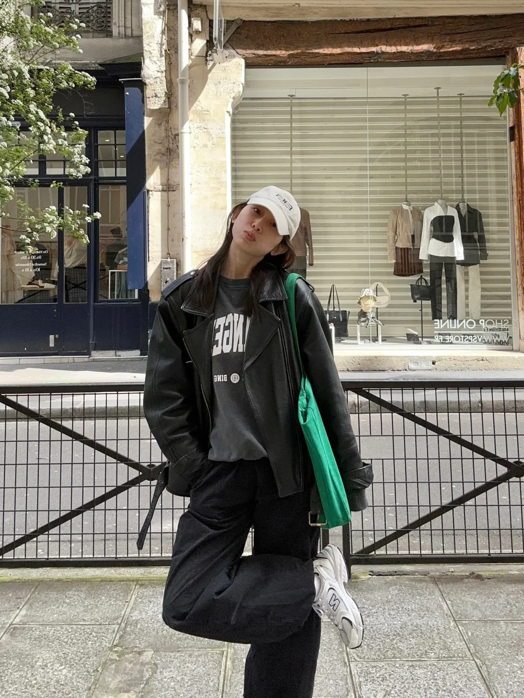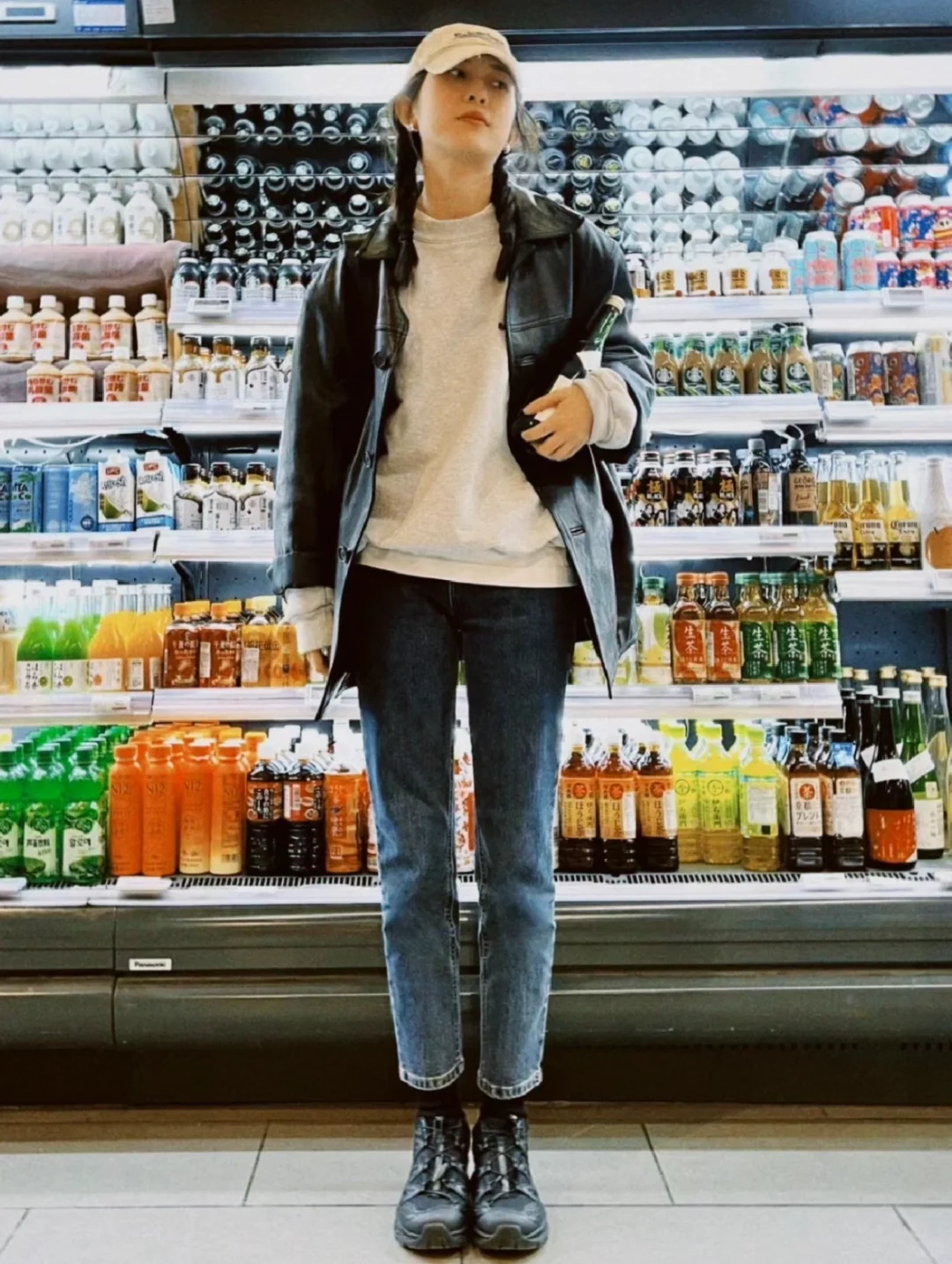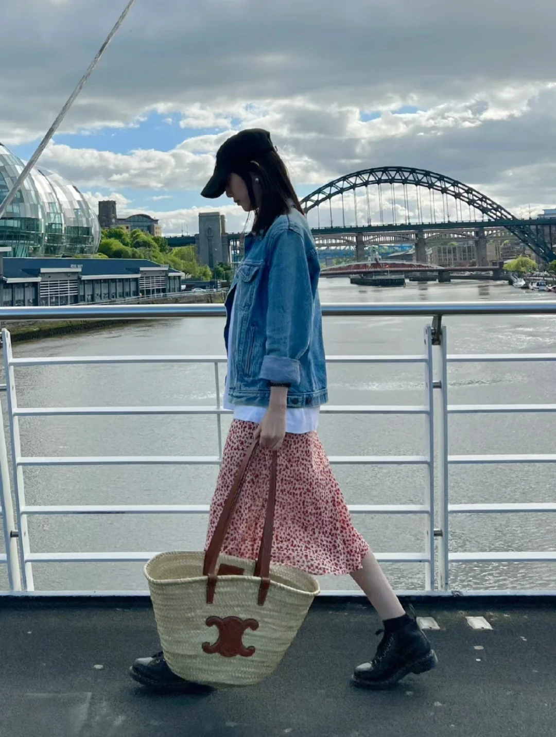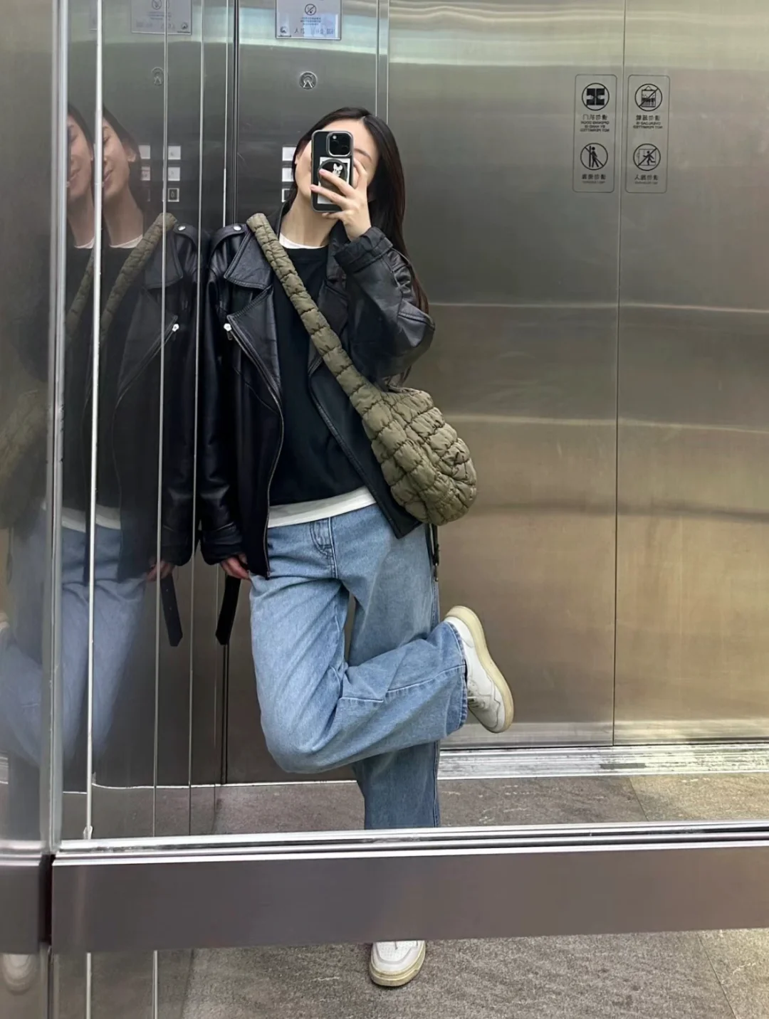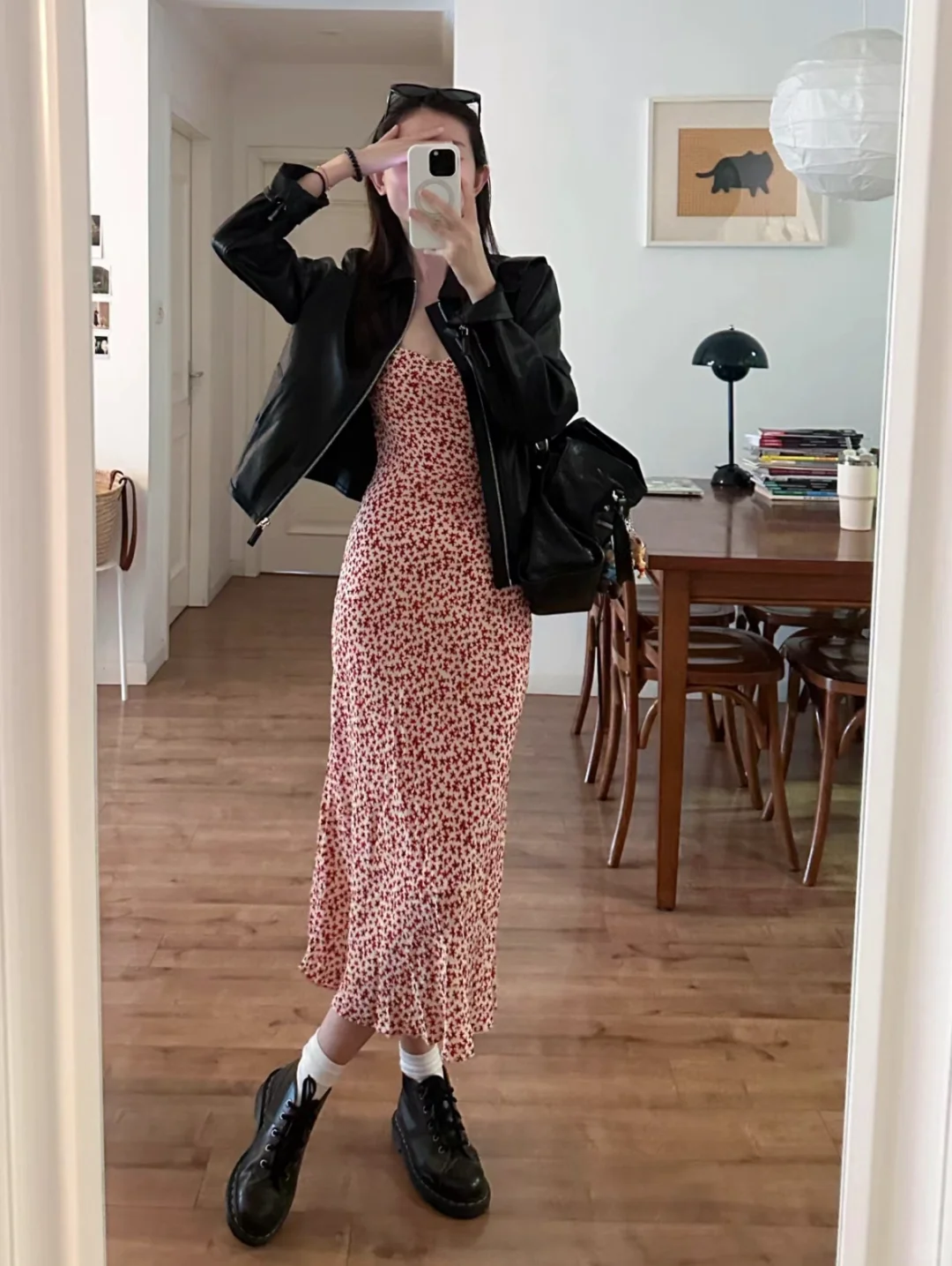 皮衣+碎花半裙💛随性自在过个好秋🍃
