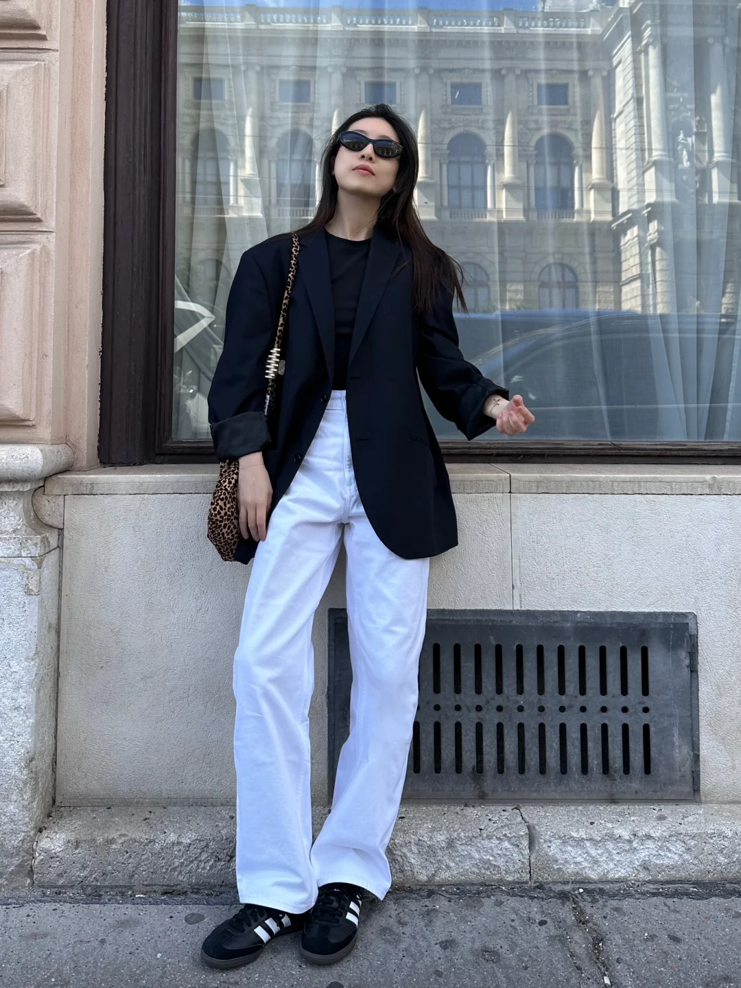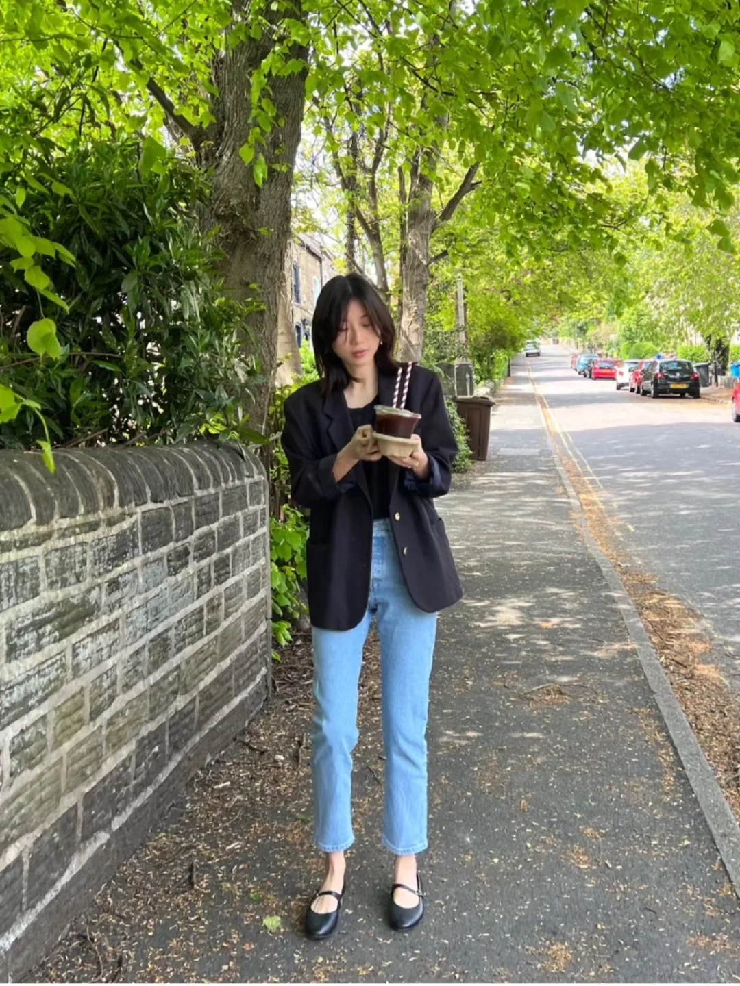 光之影&AI都市街头风,白衬衫+牛仔裤,清新自然,轻松出行!白色衬衫穿搭简