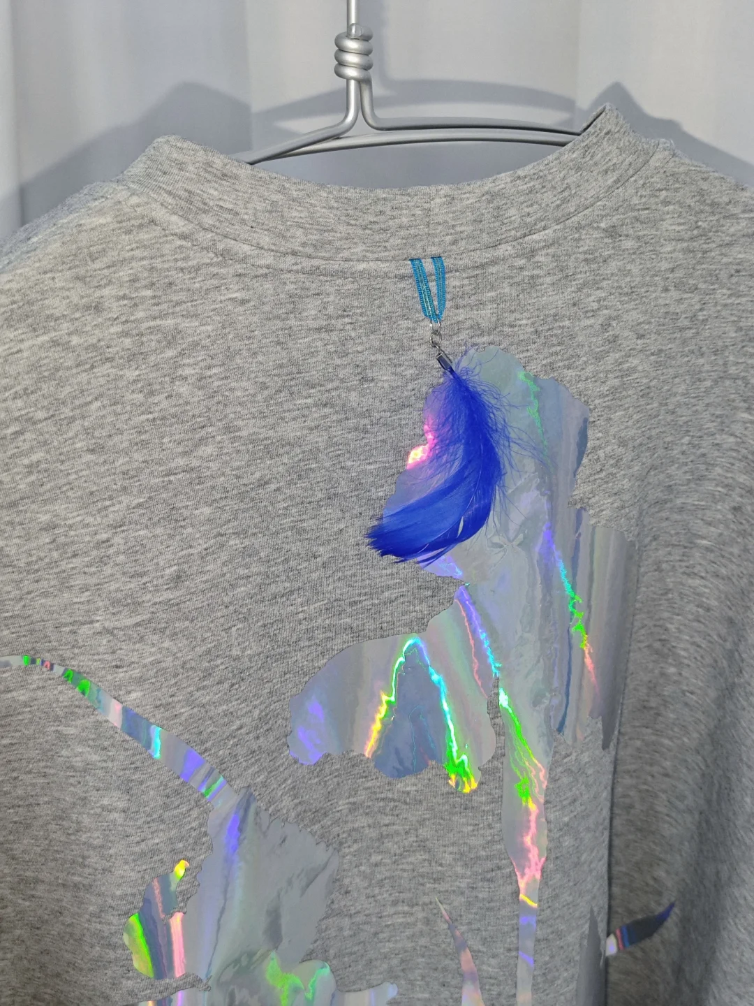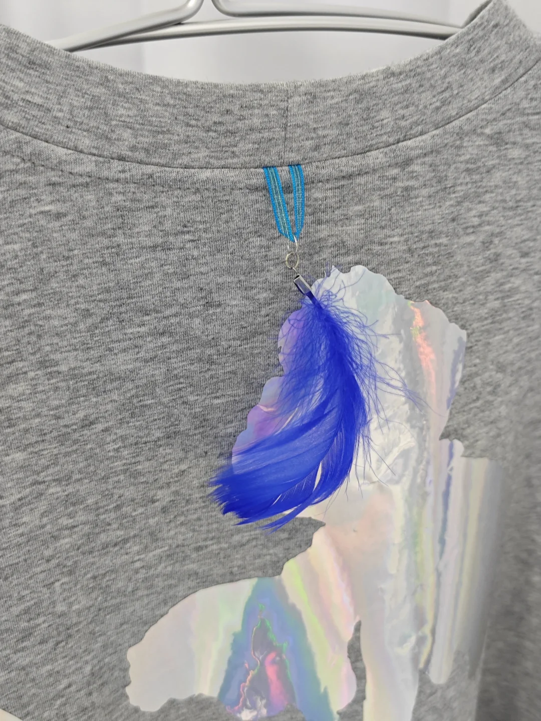 🔷鳶尾花剪影炫彩印花 💙每件衣服的後領都掛了一片羽毛