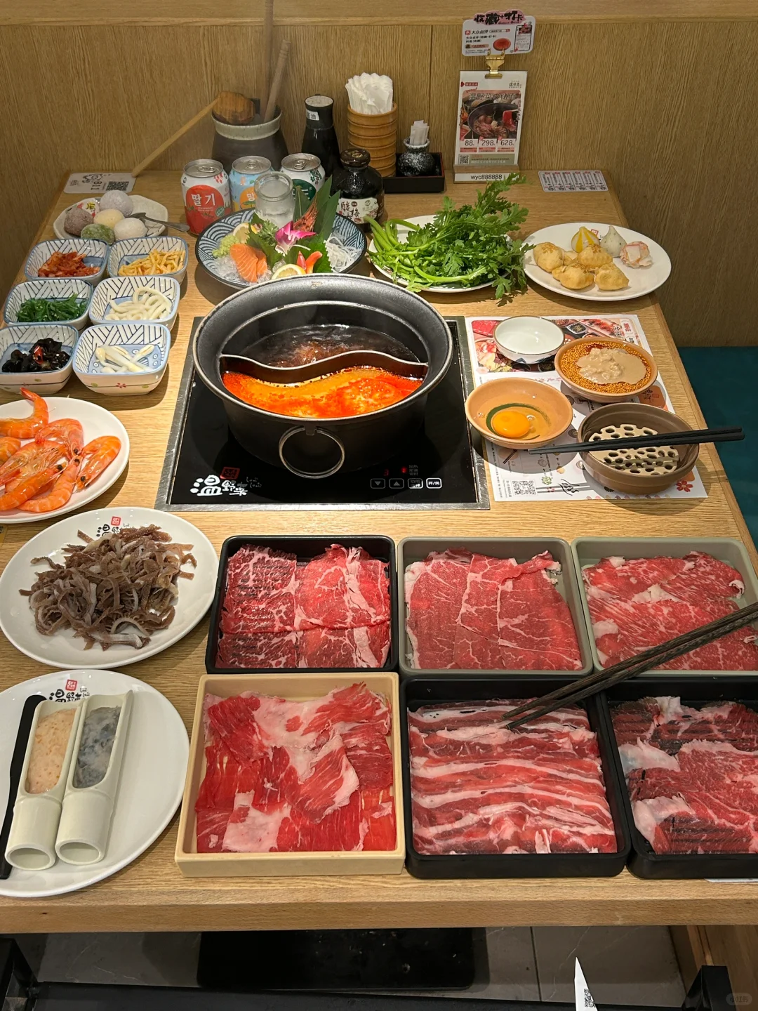 ⭐️招牌寿喜锅:锅底甜咸适中,涮肉真的好吃。和牛上脑心、牛颈肉等一样来了一盘,肉都是现切的,把盘子倒过来肉都不掉。很新鲜、脂肪分布均匀,恰到好处。鲜甜寿喜锅一定要试试品质牛肉搭配无菌蛋吃。牛肉变得更鲜嫩,一口下去感觉灵魂得到了升华😇