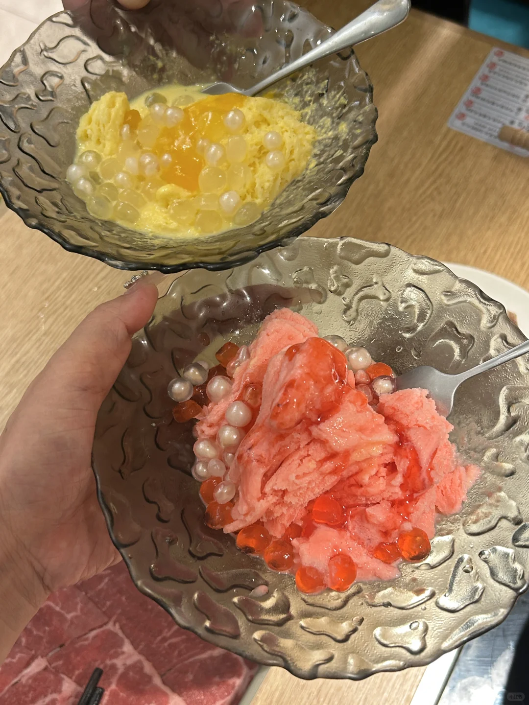 ⭐️除了各种高品质的和牛,水果和甜品也是不限量的。应季的石榴、青提和西瓜等等都超新鲜。各种甜品的味道和颜值根本不输任何一家甜品店,光冰激凌就有好多种,吃不完,根本吃不完🥹