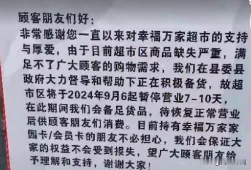 经过连续几日的抢购狂潮后,超市内的商品几乎被抢购一空,经济损失之惨重可想而知。为了尽快恢复超市的正常运营并弥补这一巨大的损失,超市方面不得不做出艰难的决定:自9月6日起暂时关闭店铺数日,以便进行紧急补货和全面的清理整顿工作。同时,超市也通过官方渠道发布了闭店公告,并向广大顾客表示了诚挚的歉意和感激之情。