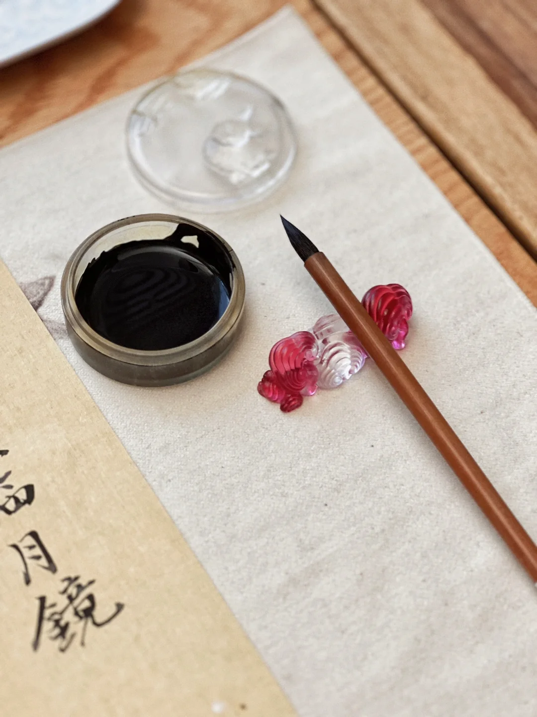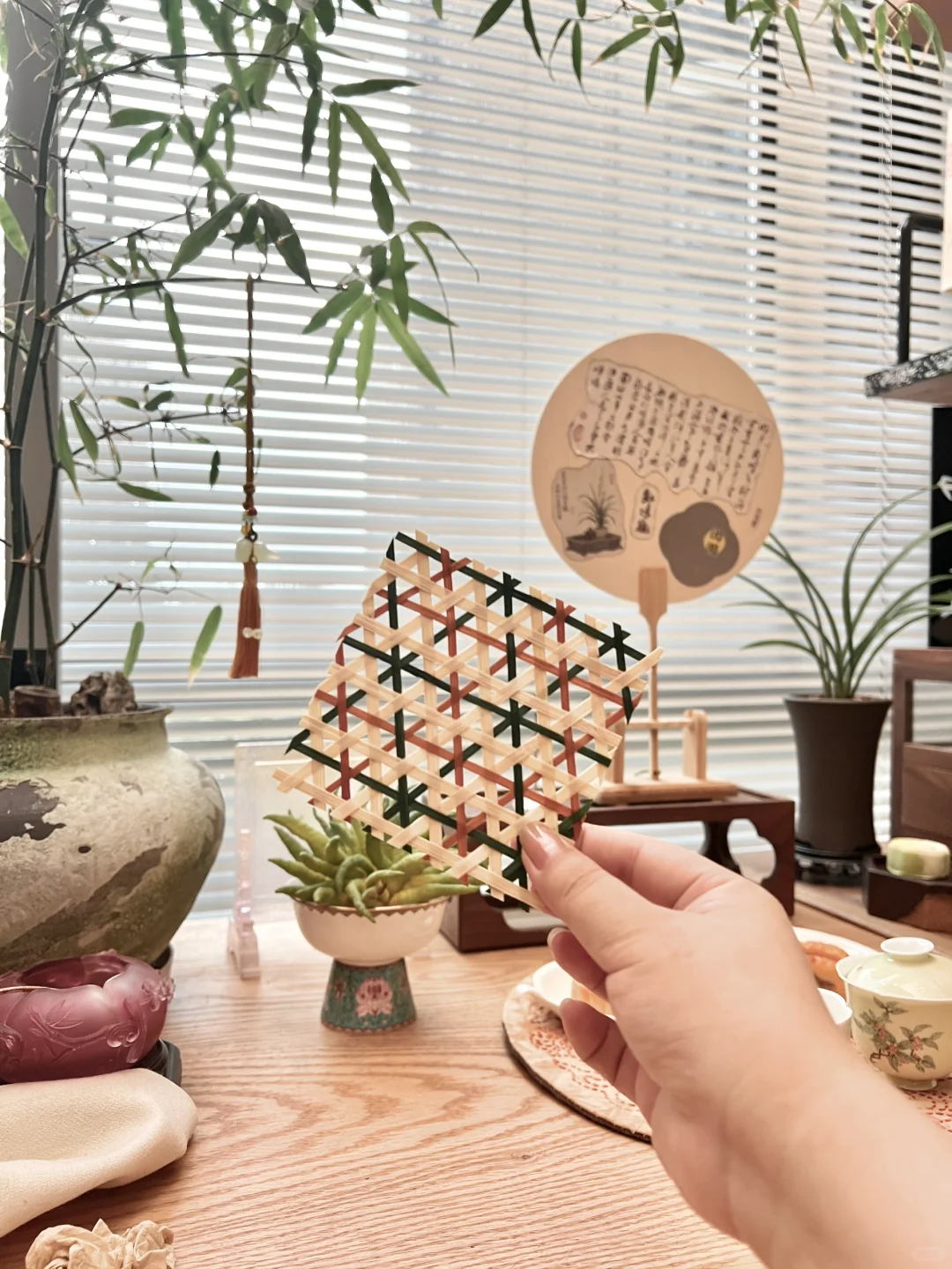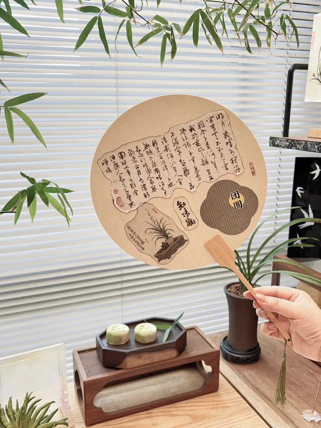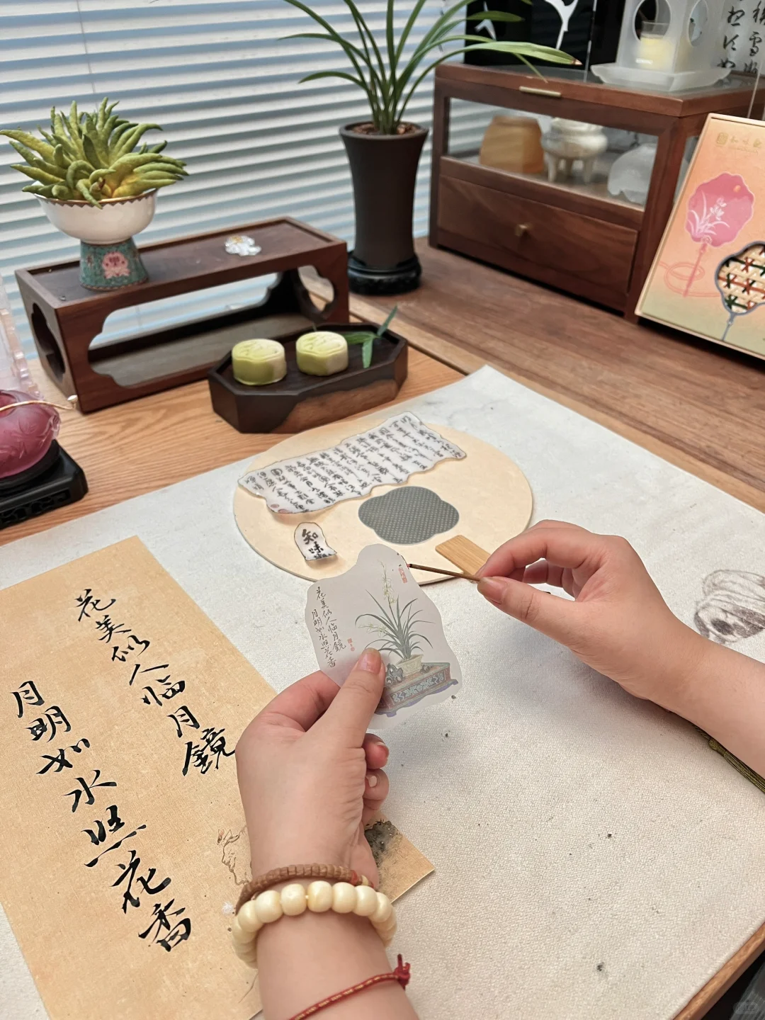 挑选了一把圆扇,用礼盒里的书签纸做了锦灰堆扇面。