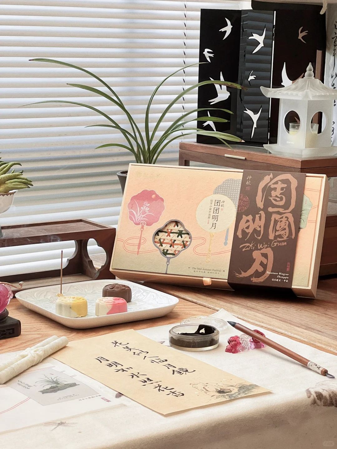 月饼礼盒包装的细节,把书法里章法与飞白的韵味,发挥得淋漓尽致。