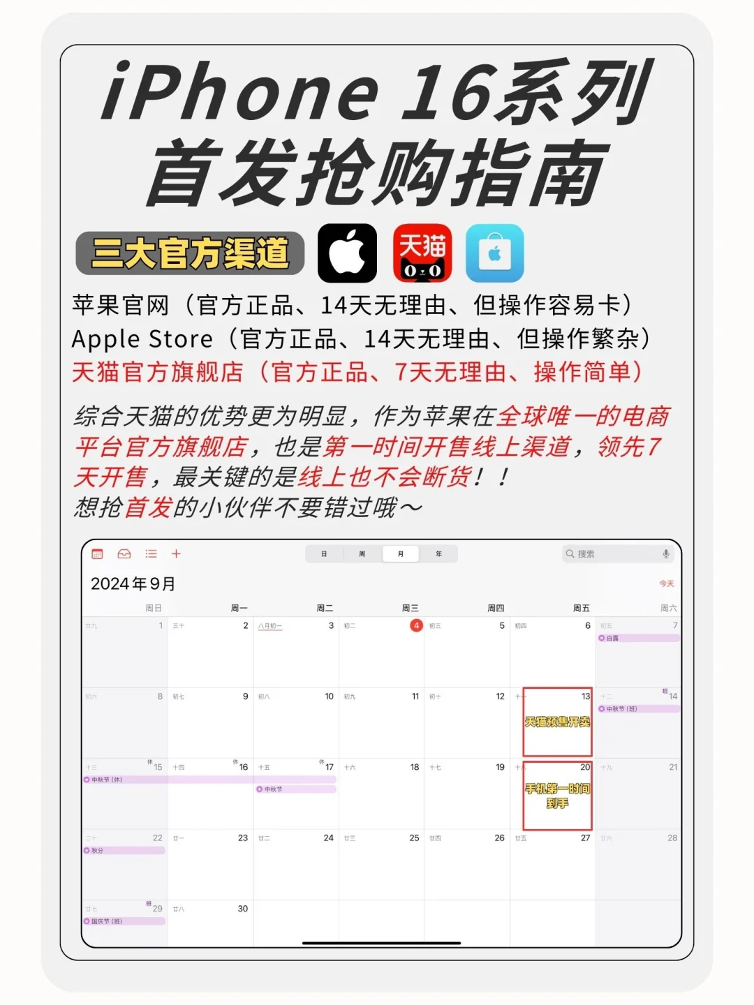 今天给大家推荐天猫平台[哇R][哇R]作为苹果在全球唯一的电商平台官方旗舰店,不仅官方正品有保障❗️还跟官网一样也是,第一时间开售,领先线下7天!根据往年的经验,只需一周的时间手机就能到手,感兴趣的宝子们可以冲👌🏻