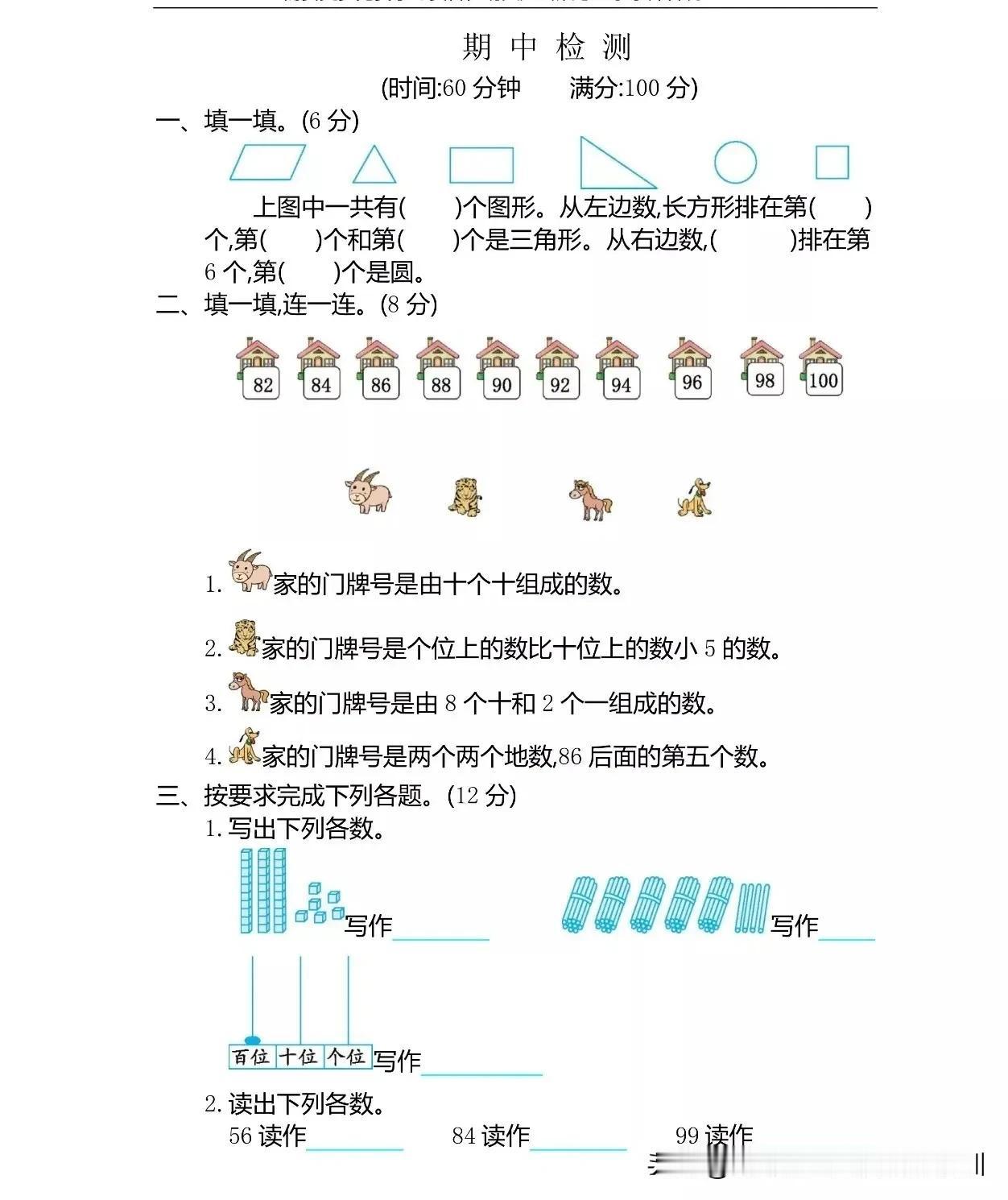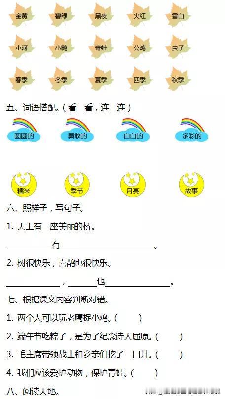 #一年级数学下册# #教育# #一年级语文下册# 期中试卷含答案,家长有空带孩子练练吧,成绩提高快!
