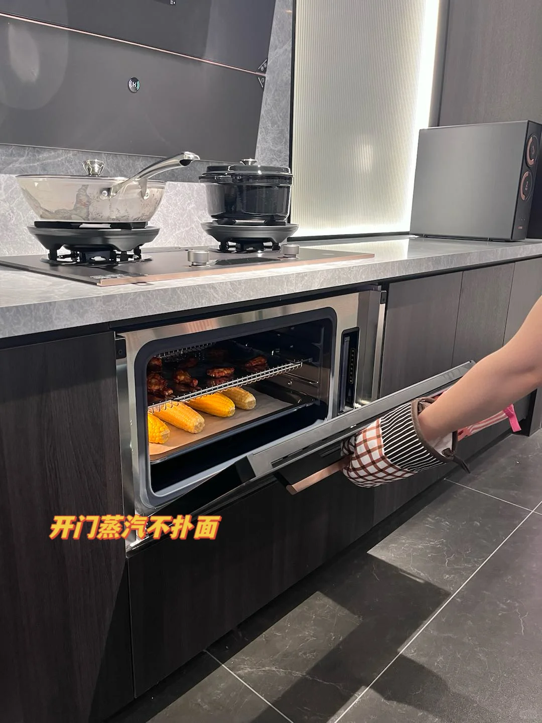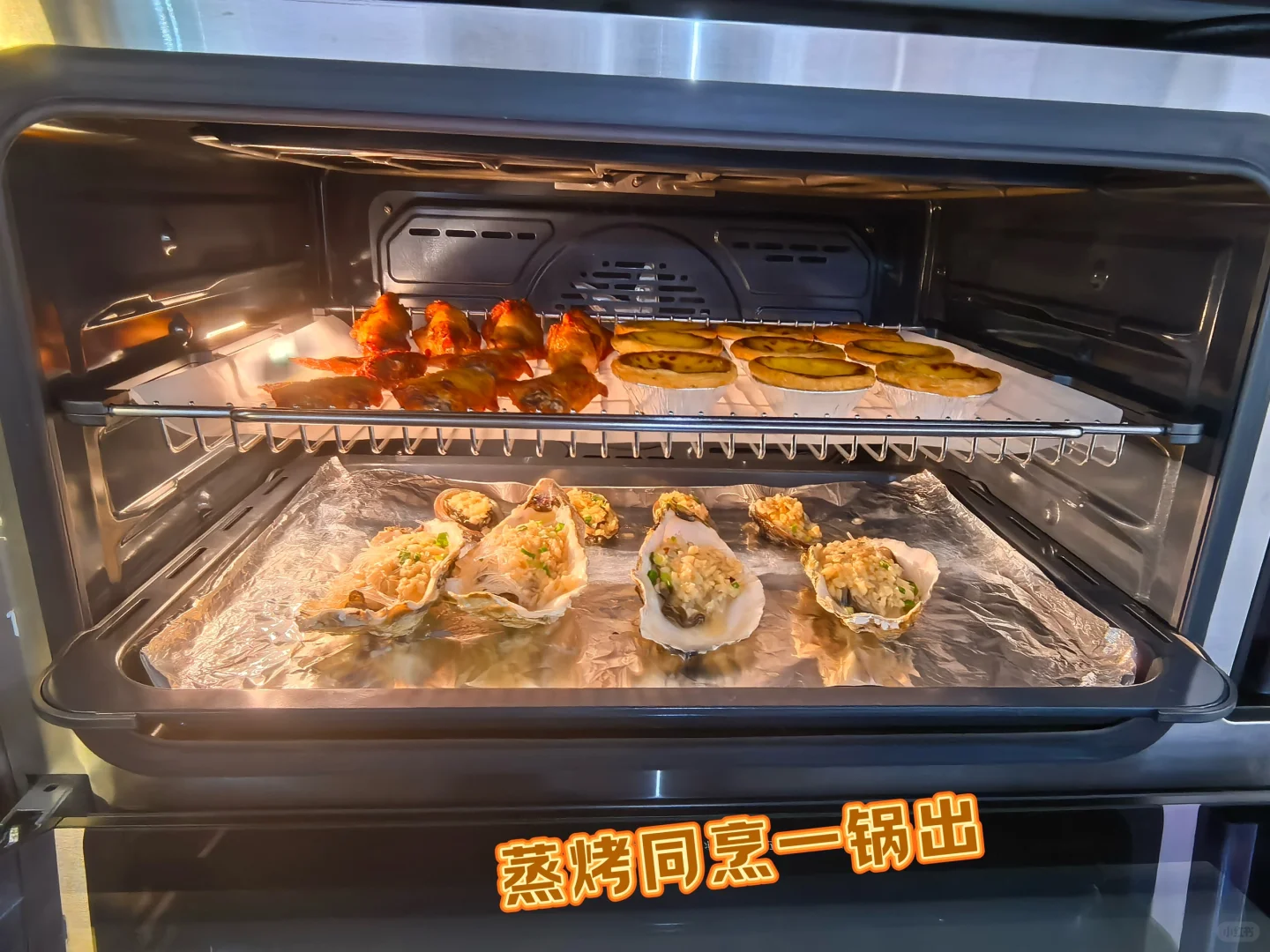 像我平时喜欢喊朋友来家聚餐,它蒸烤同烹的功能真的上大分!直接用它上面烤下面蒸,半小时就能轻松搞定一桌菜,效率高了很多。而且吸油烟效果也真的很好,做完饭身上都不带沾味儿的,油烟吸的干净,清洁起来都轻松很多,磨砂玻璃的面板简单擦擦就干净了,用到现在也快一年了,体验感真的没得说~