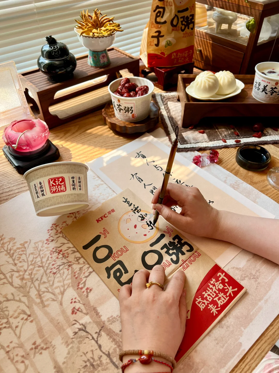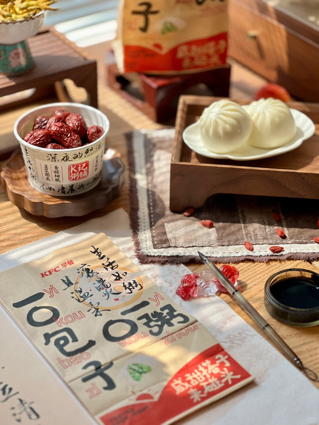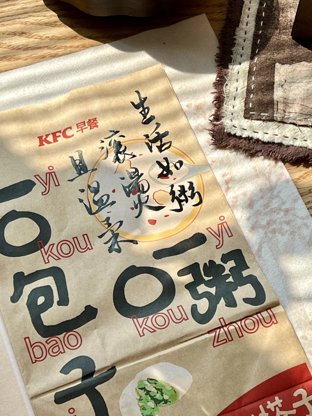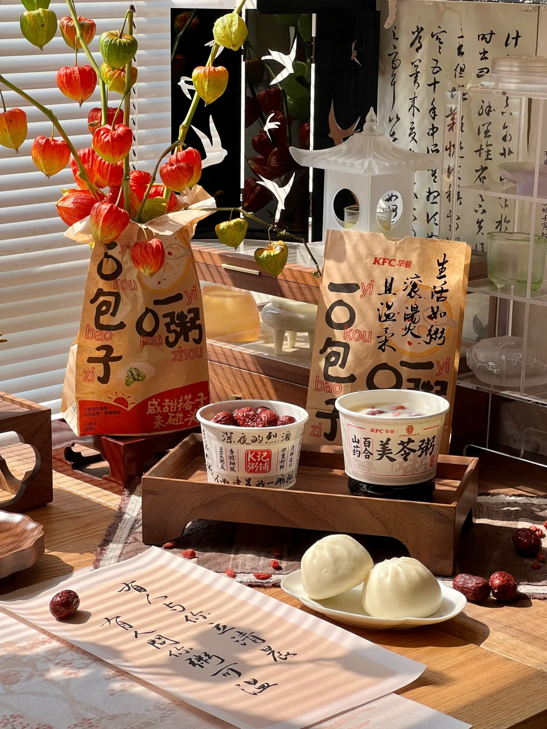 今天吃了肯德基早餐新品,K记山药百合美苓粥,豆浆入粥做粥底,加入山药、百合、枸杞、红枣