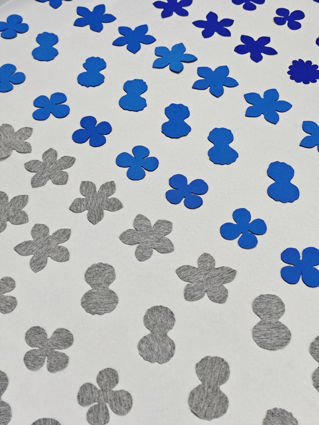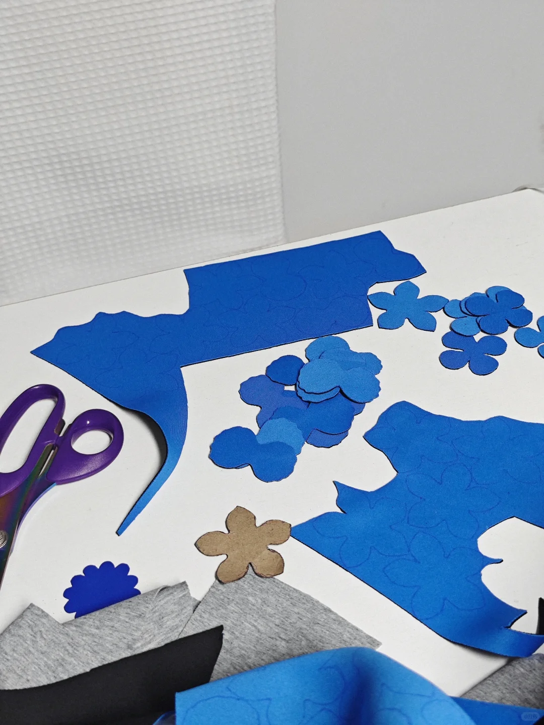 💙圖4,用氣消筆把花勾在邊角料上,,因為是利用邊角料來的,所以沒辦法做批量的激光切割,所以只能人工一片一片去剪