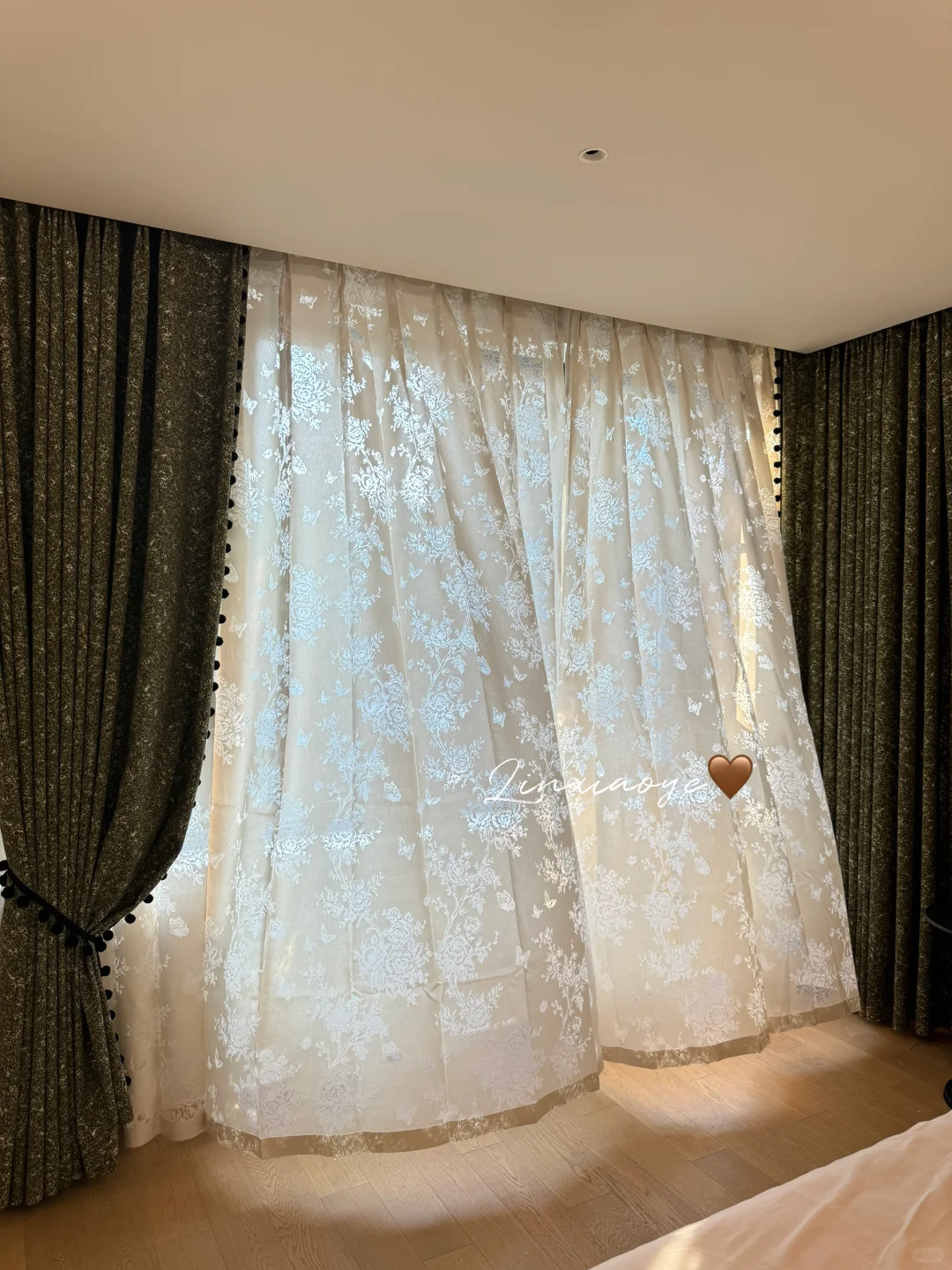 随意一发的复古绿窗帘和蝴蝶纱帘的视频没想到一下子火了…不得不说这复古的高级感和纱帘的氛围感真的好看😍