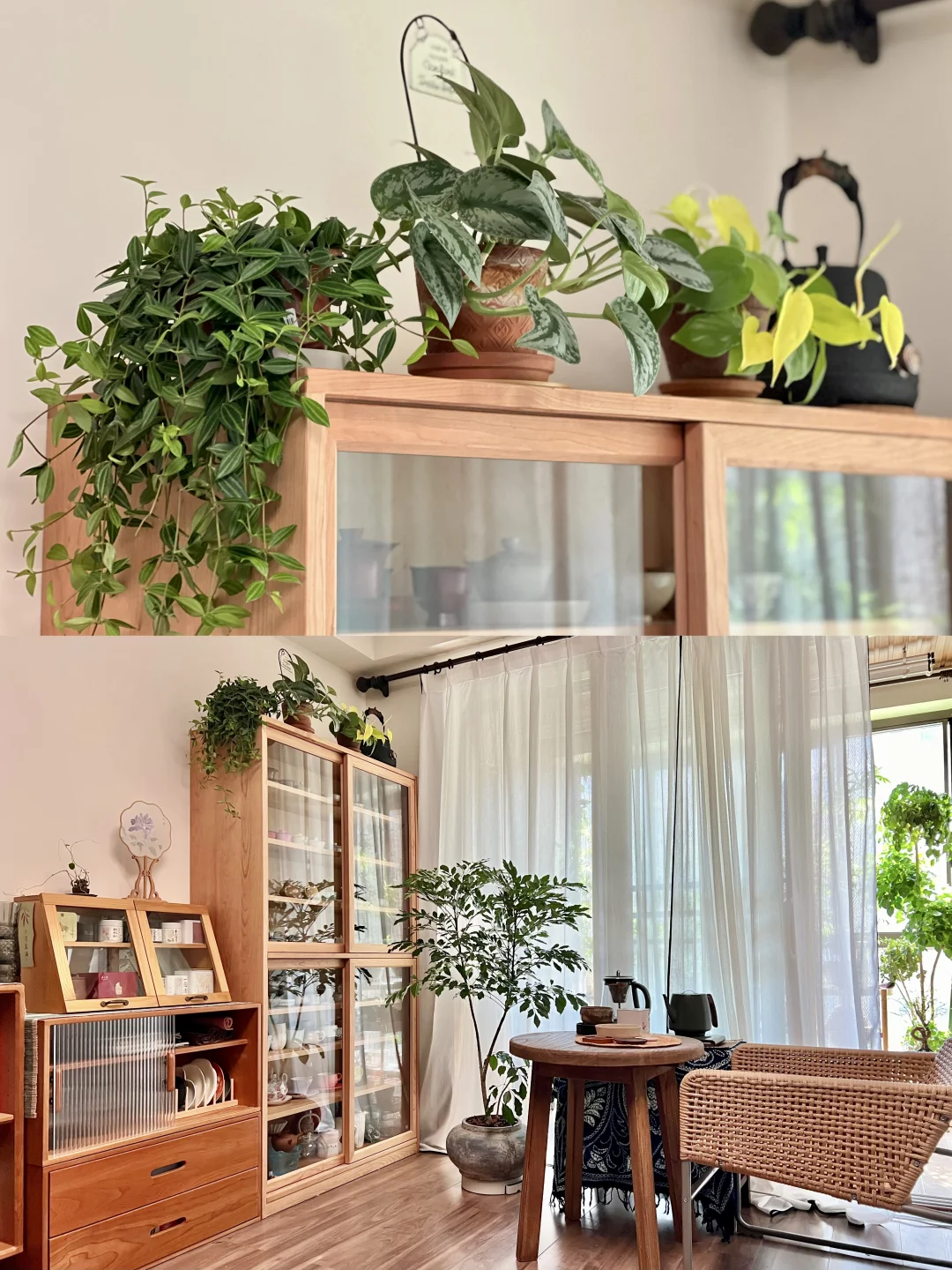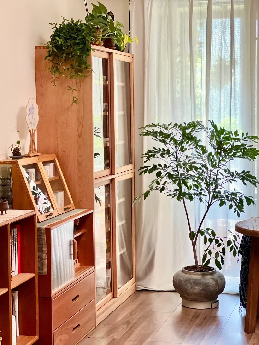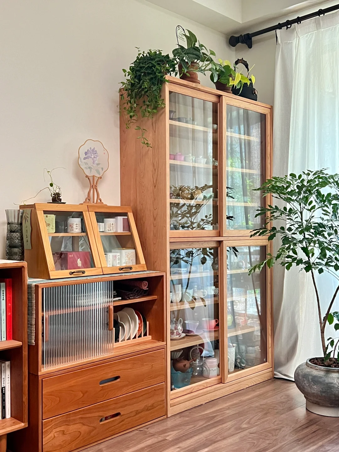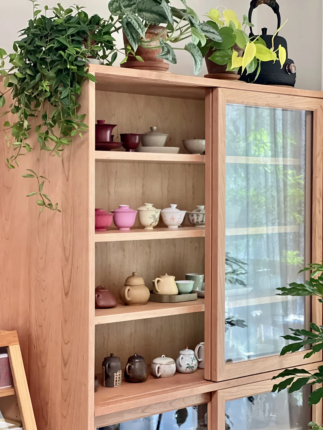 新添置了1.8米樱桃木高柜,共八层,收纳了部分常用的茶具。