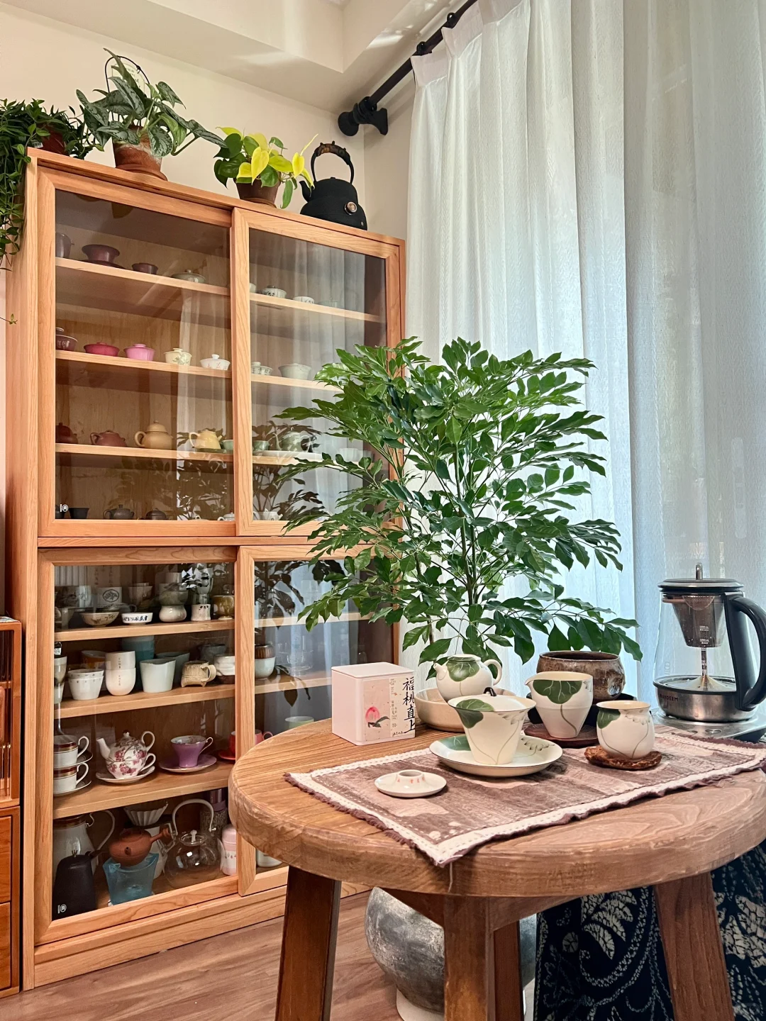 左边组合柜,收纳了茶垫、壶承、茶具配件盖置茶则这些。
