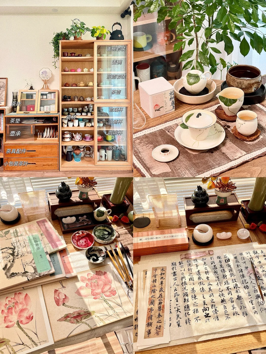 一直有一个把茶具陈列出来的愿望,正好有空,给自己整理出一个茶室。