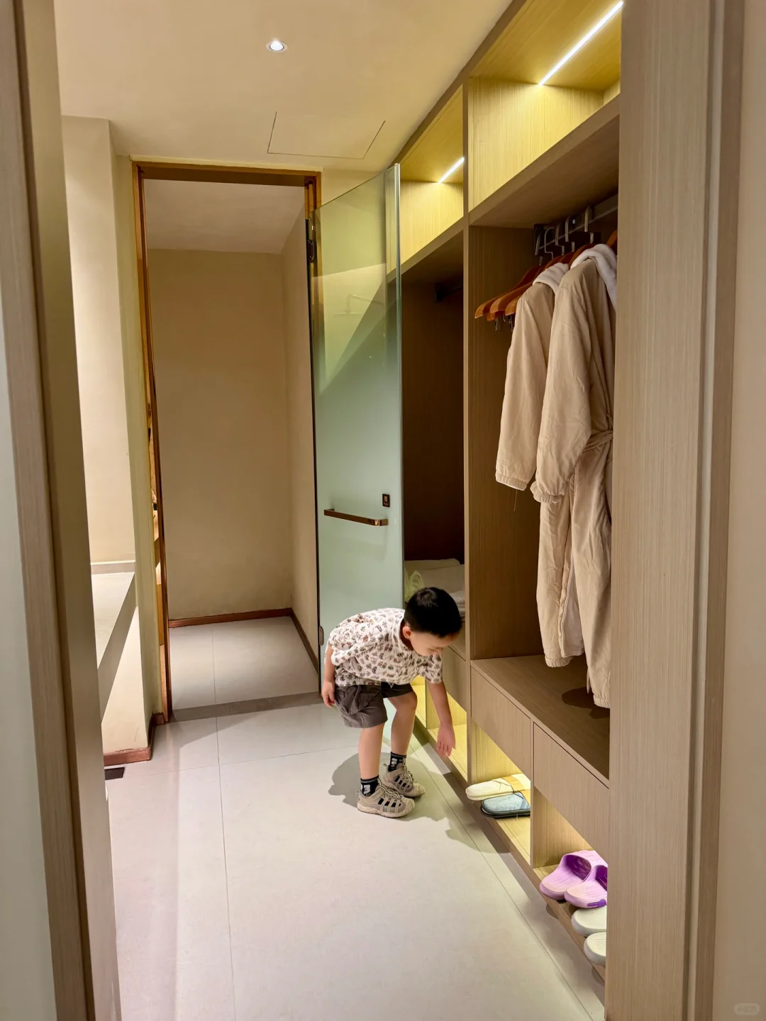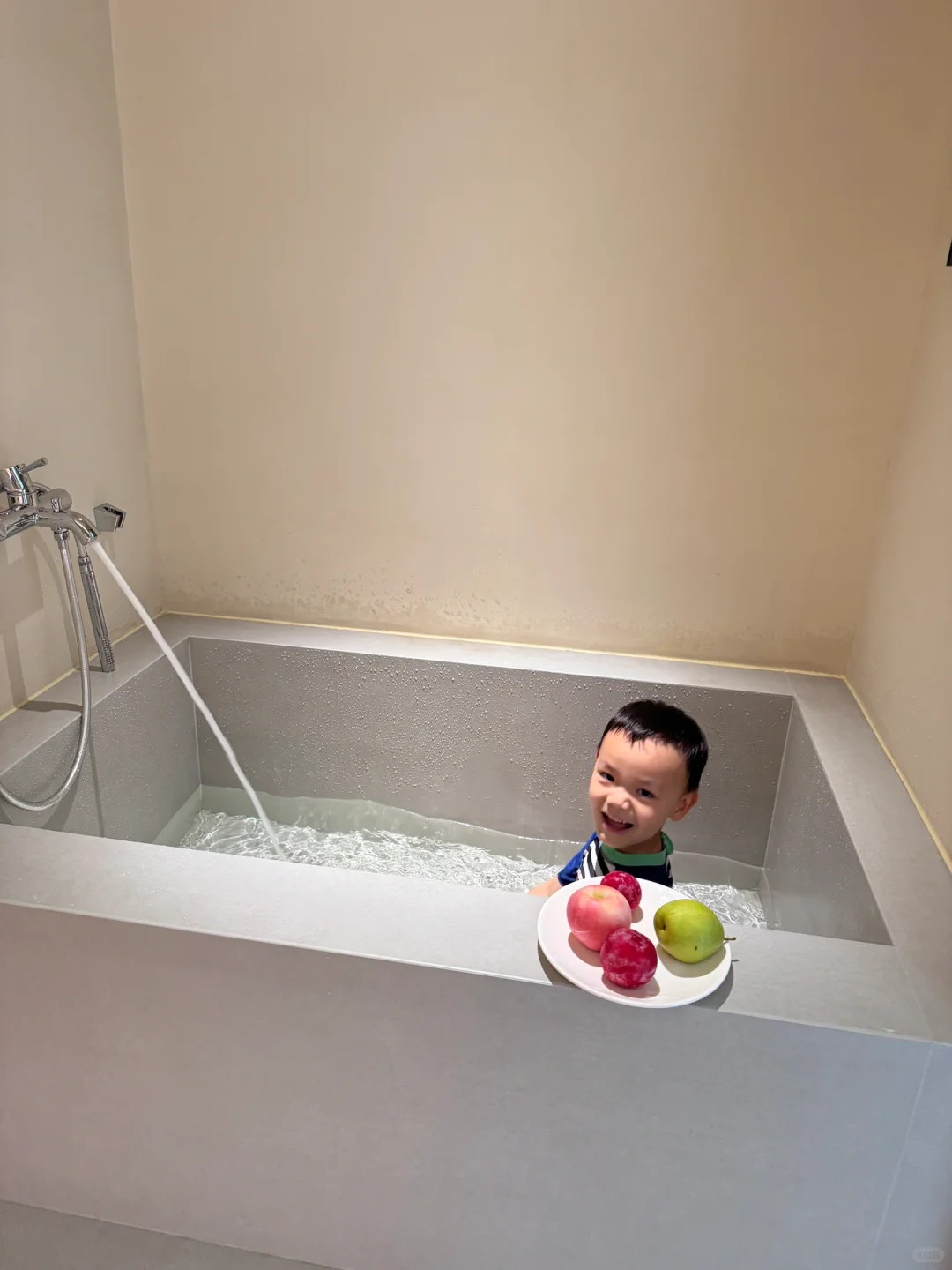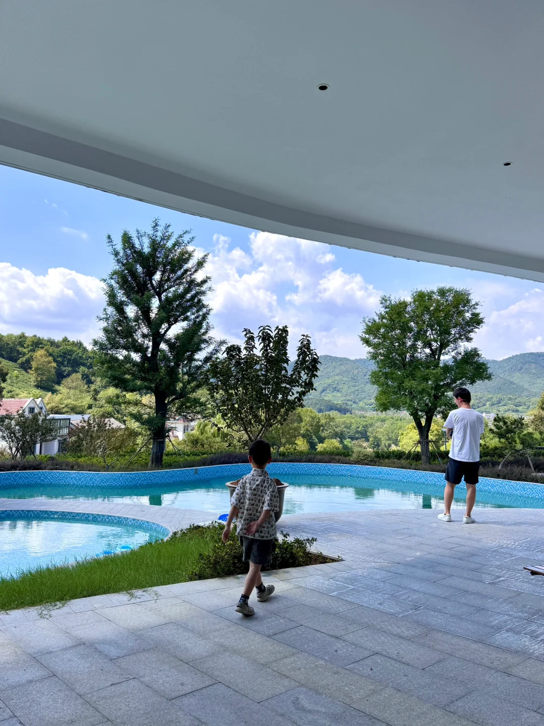 🏡:🏨内设有双层泳池,一楼二楼都有露天泳池,装修风格比较现代化,房间配备了私汤温泉,孩子在那每天都要泡澡