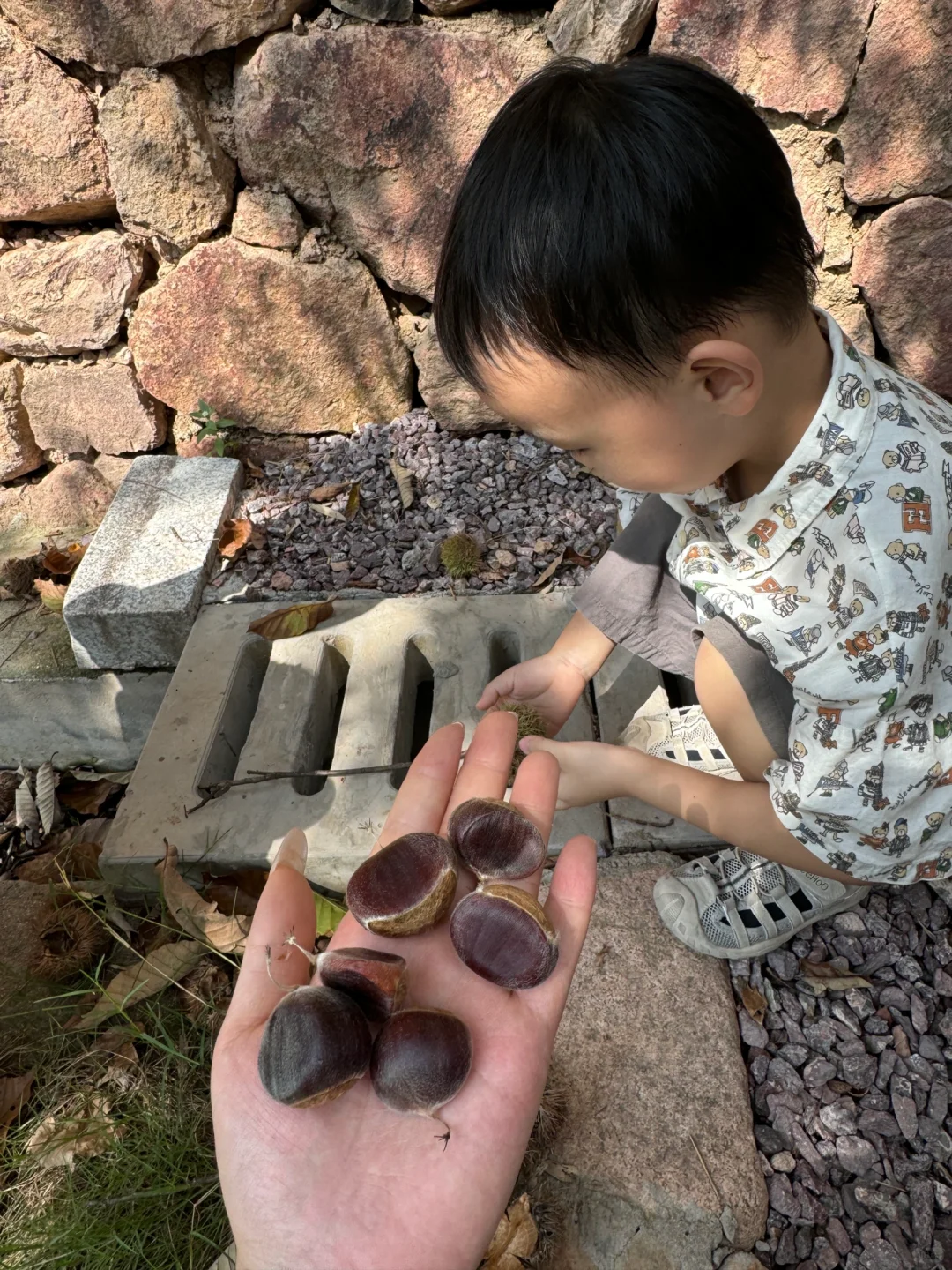 这次住的酒店旁边有座山,成片的茶树,还有非常大颗的🌰树,孩子第一次看到了🌰最原始的样子,开心极了[派对R]