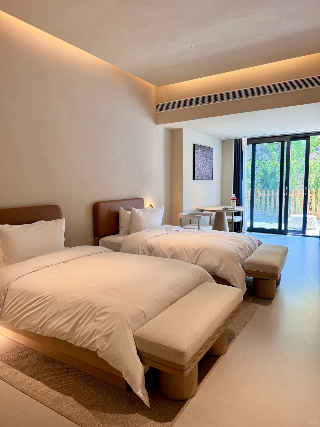 🍃:酒店是我们喜欢的现代极简,结合大面积落地玻璃,不仅增加了室内的采光,还能够充分欣赏到窗外的美景,一眼看向窗外的都是满眼绿色茶树和蔚蓝的天空,房间内设施也配套齐全!