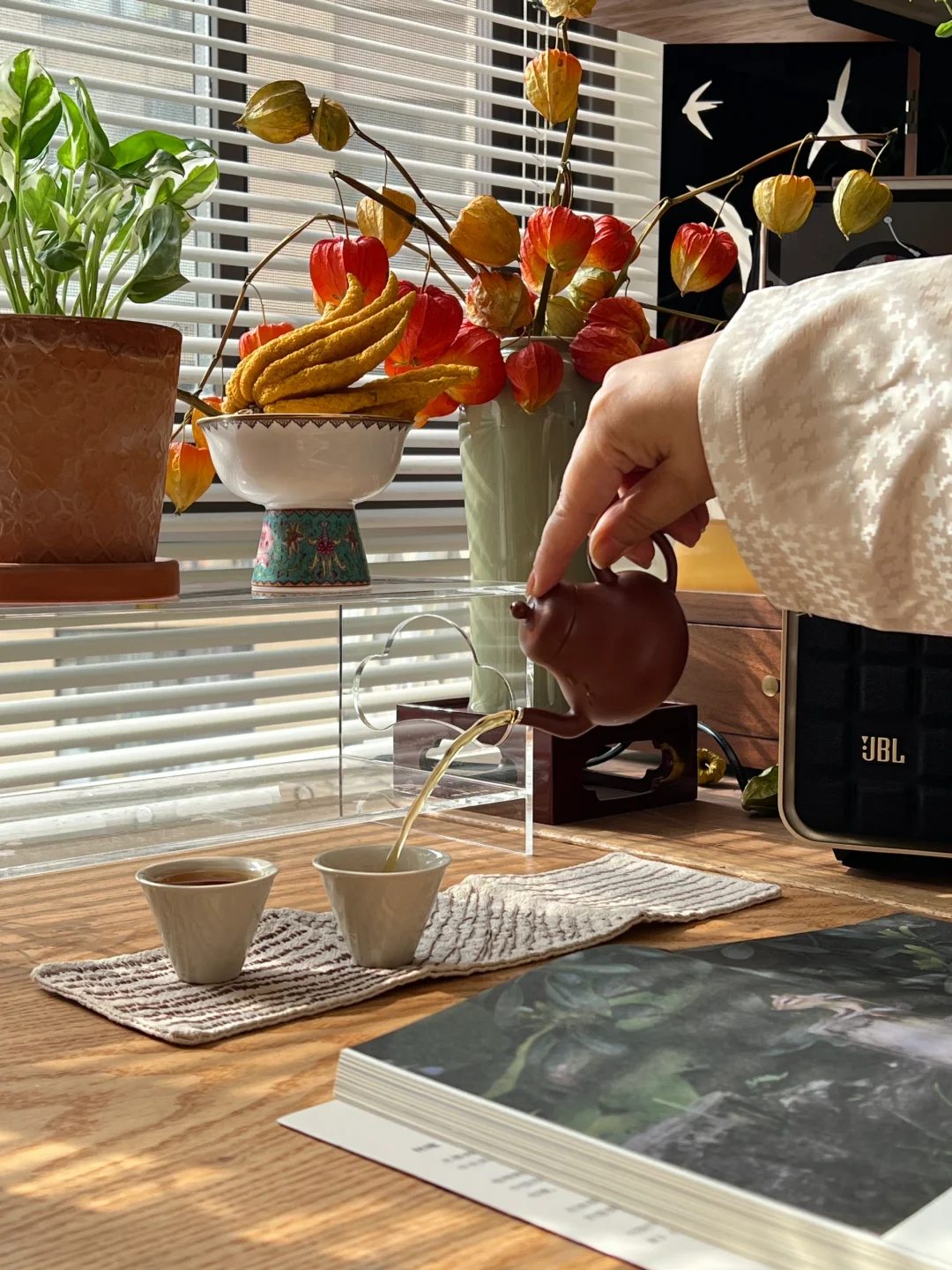 秋天的风带着丝丝凉意,用紫砂壶闷一饼老白茶,温润质朴,暖心又治愈。