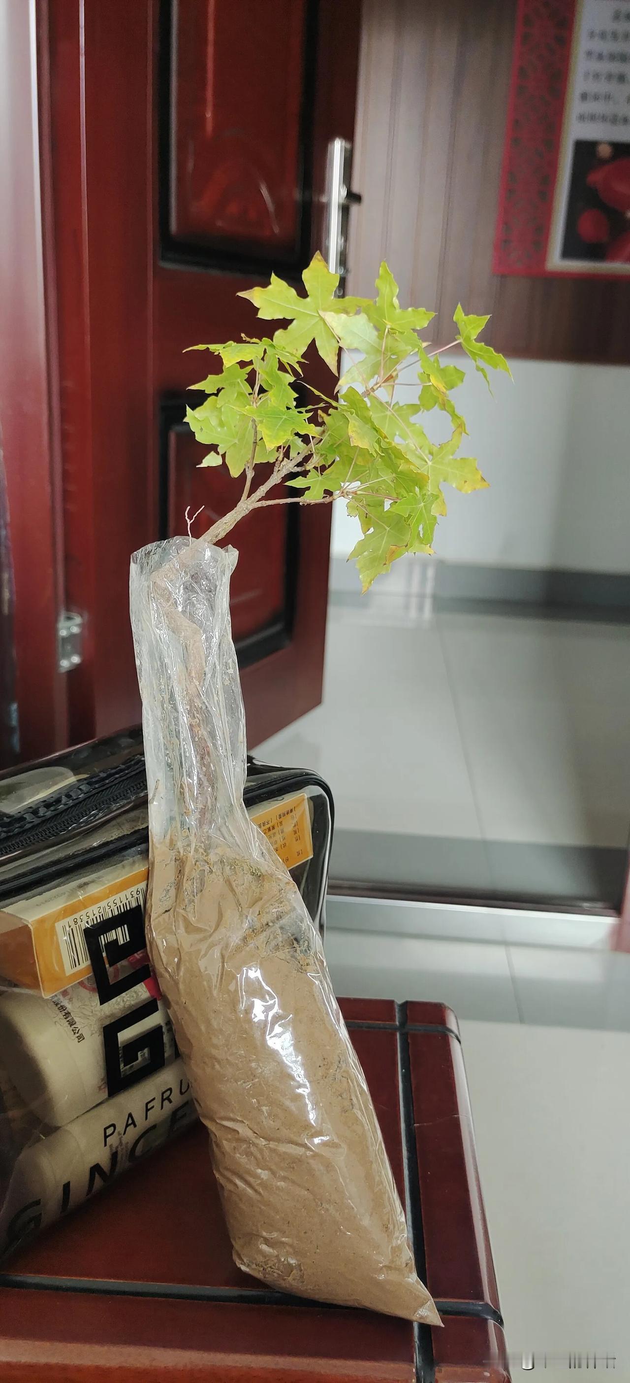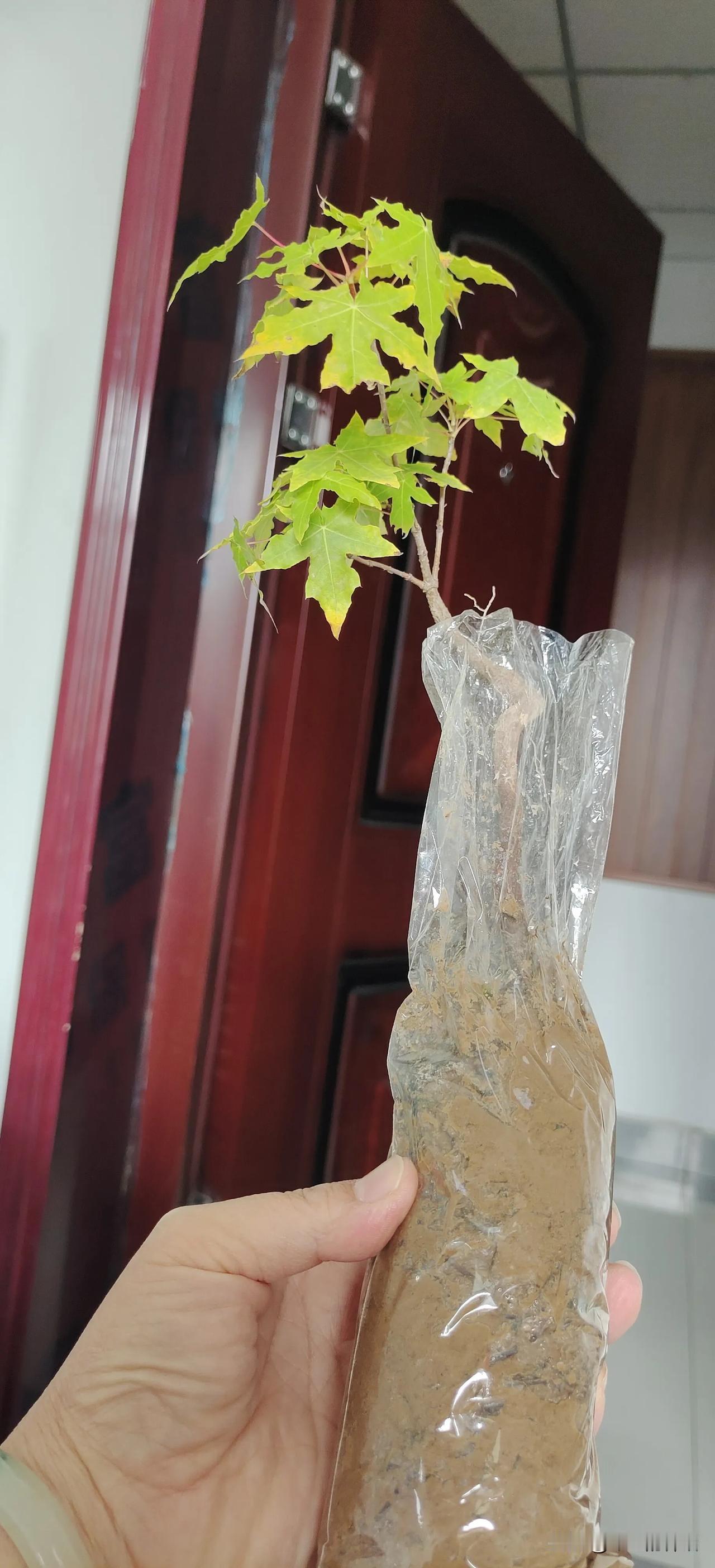 枫树苗如何养 #培育小树苗吗# 昨天下午在公园散步,看到好些枫树苗树,选一棵适中的挖了。因为土较干,粘不往根,就将装糖葫芦的食品袋抽下,放入枫树苗,并填放些土,然后到公园内的卫生间接了点水,防止树苗脱水。现在还没时间种植花盆。 不知应该怎么做才能养活这棵苗?请大家来#分享绿植经验# !