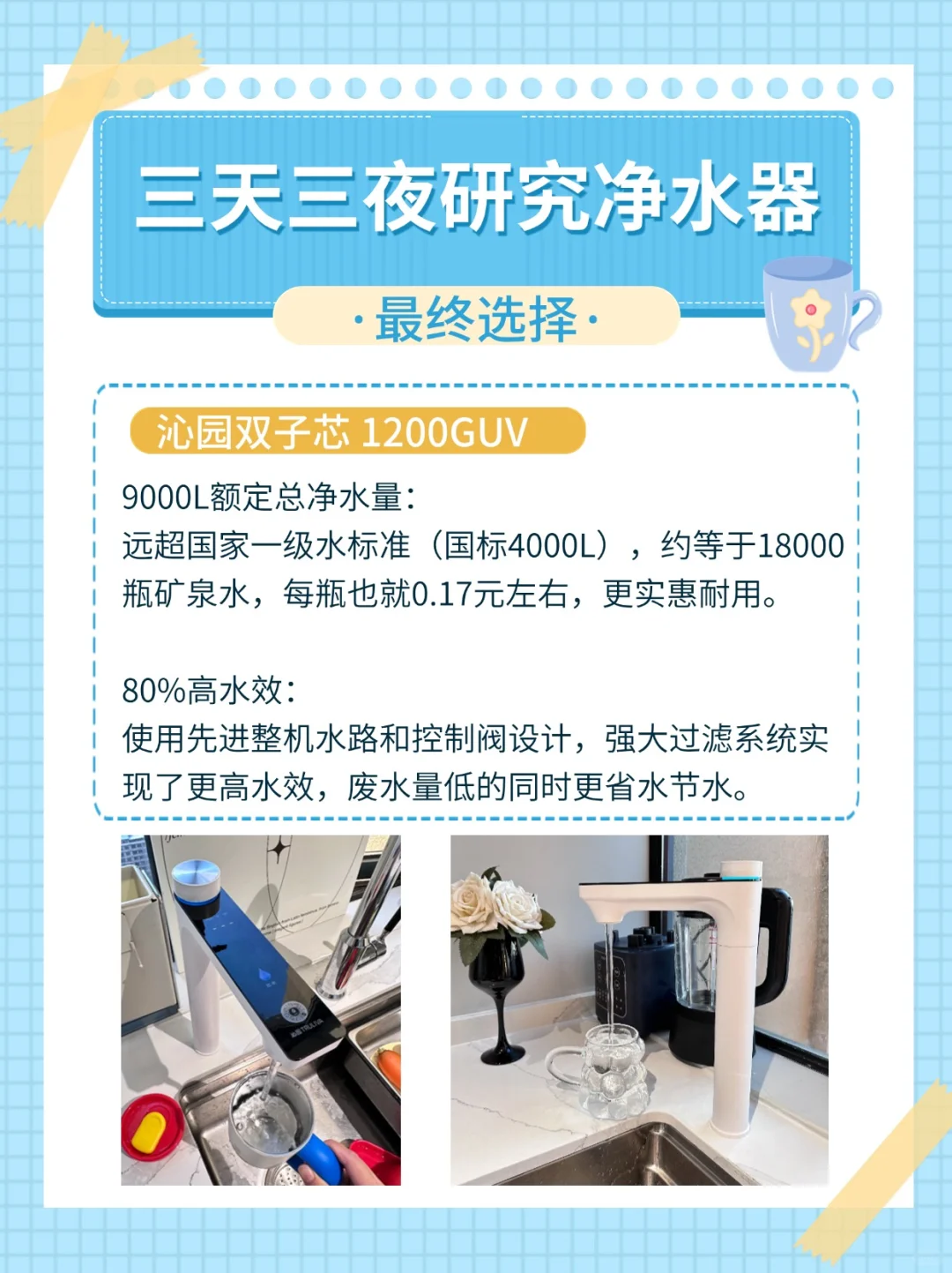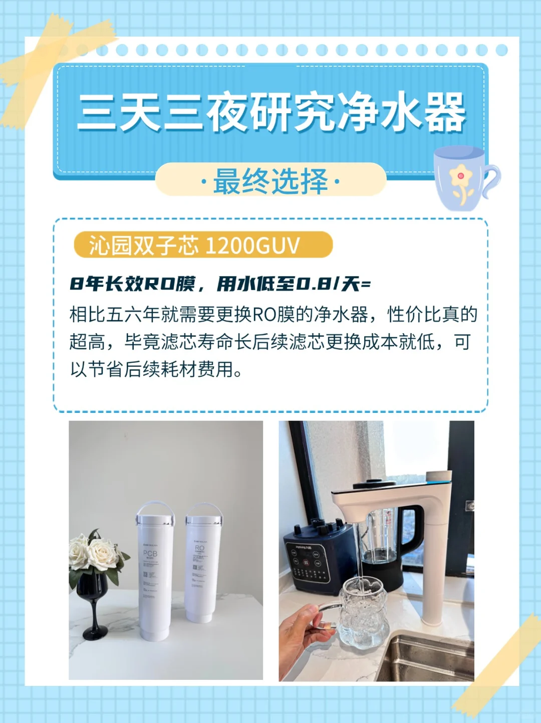 后面做了下功课,再对比了下性价比,这款沁园双子芯净水器都符合了我的要求,它的RO膜寿命长达8年,相比五六年RO寿命的净水器,滤芯寿命大大延长了,这样不仅减少了日常维护的麻烦,也降低了长期使用的成本,让我这个精打细算的宝妈感到非常划算。