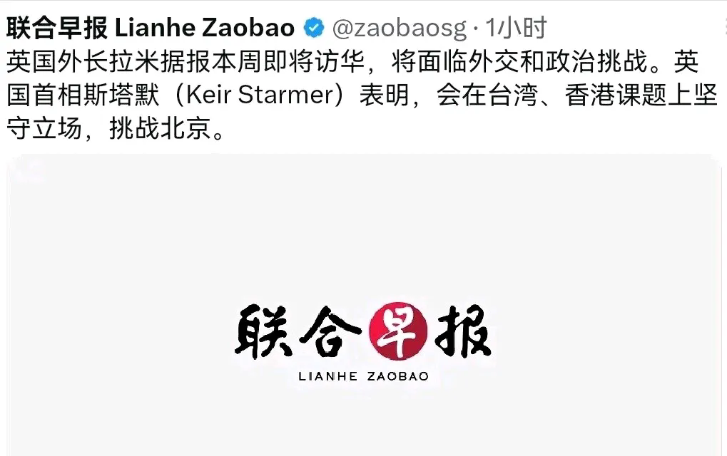 非常意外!英国首相放话了! 英国首相斯塔默10月16日说,将尽可能与中国开展合作,但是在台湾和香港两个问题上不向中国让步。 事实上,英国首相斯塔默的这个说法,是在英国外交大臣即将访华之前做出的表态,这个意思非常清楚,就是一方面英国想与中国加强合作,从而获得经济上增长的动力,寻求对英国经济增长有帮助的地方。 但是另一方面,英国还想在台湾和香港问题上表现出强硬姿态,从而向我们施压,以获取更大的经济利益。 同时,英国也想对美国有一个交代,毕竟英国现在靠近中国,与中国改善关系,肯定害怕美国对他们有想法,所以说英国首相斯塔摩的这个说法正是来自于此。